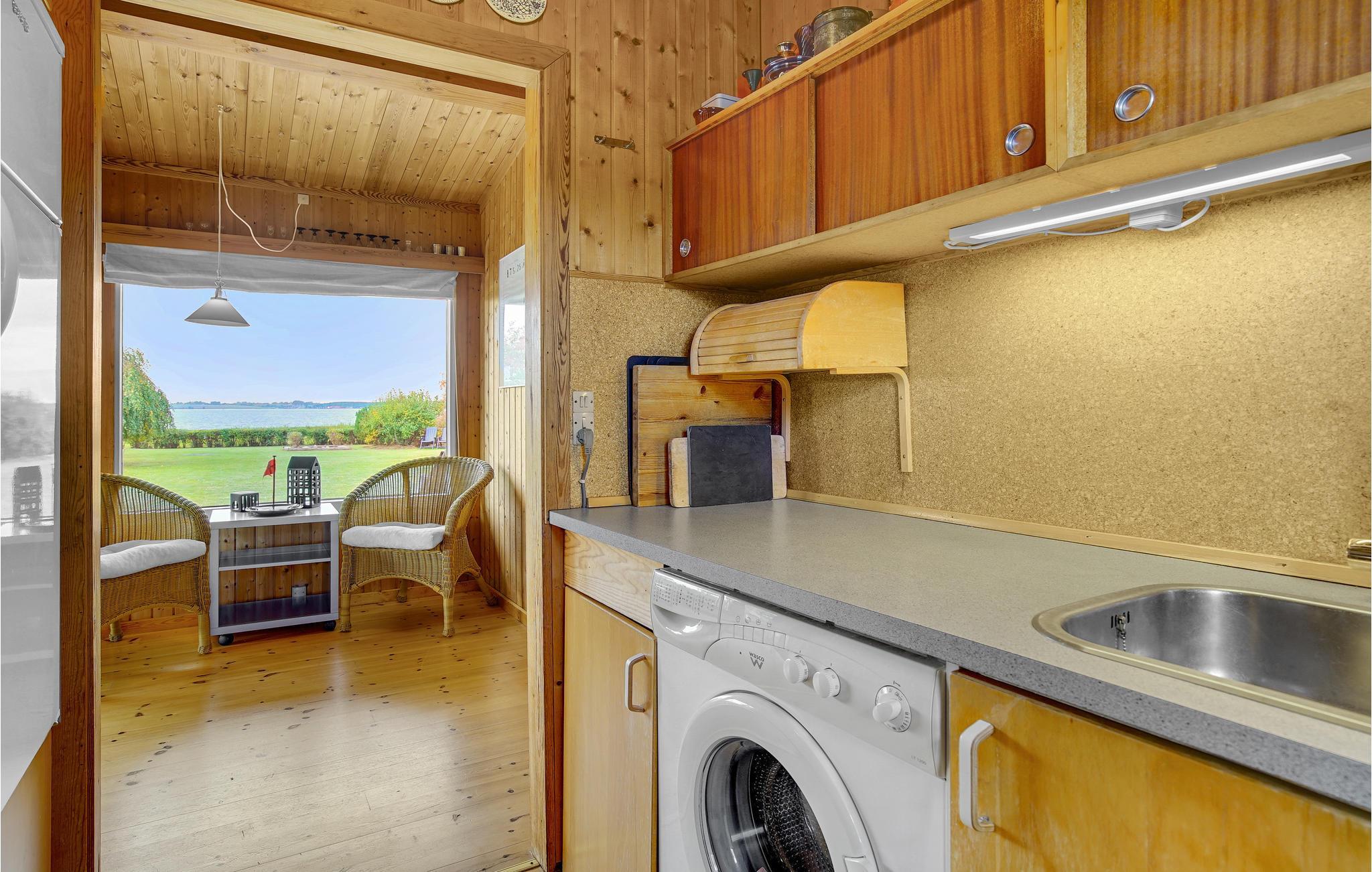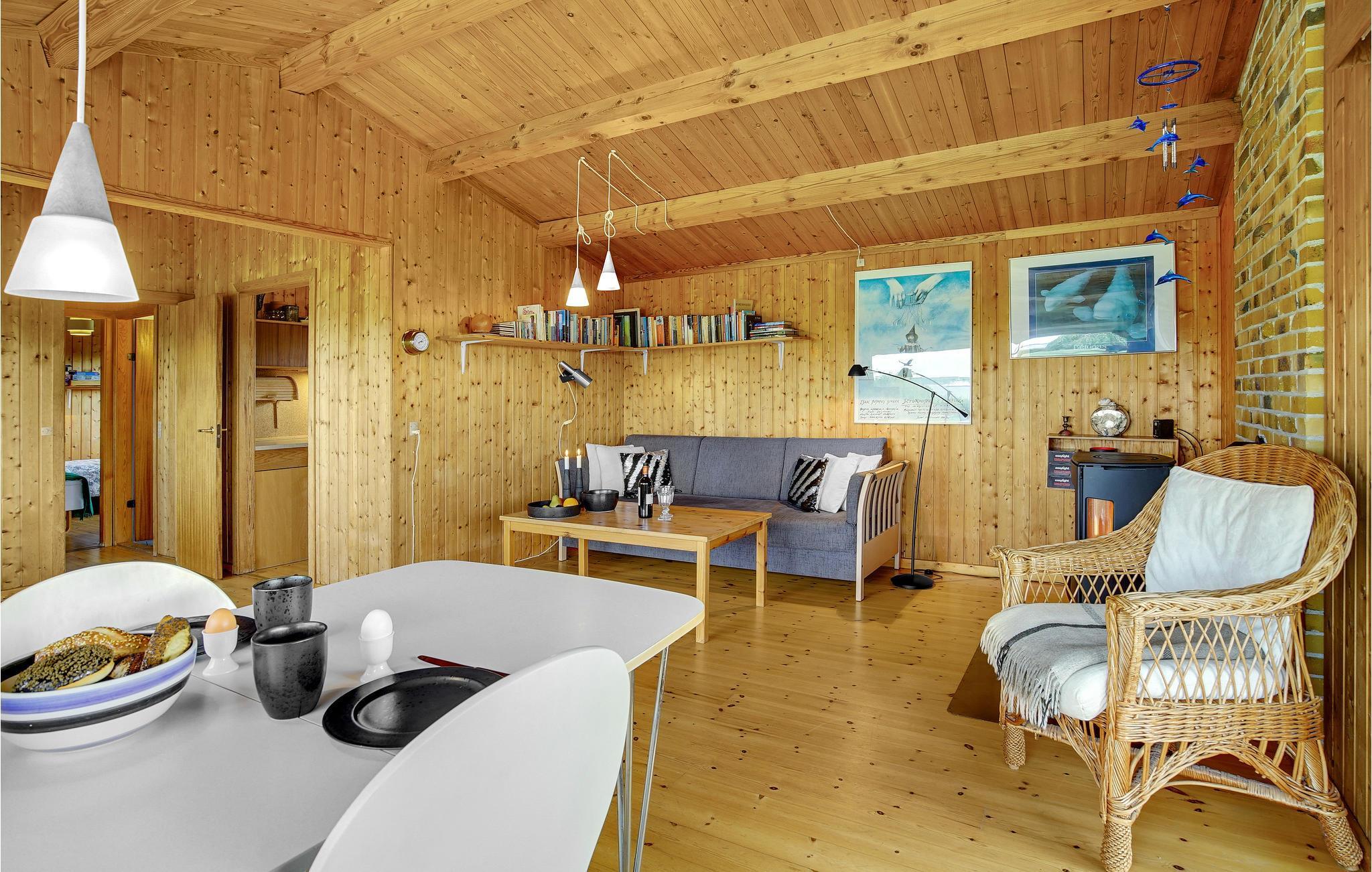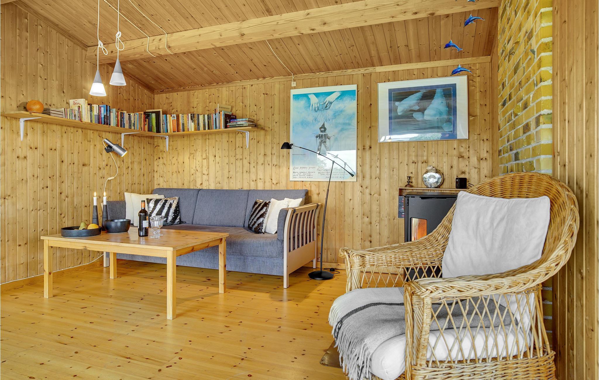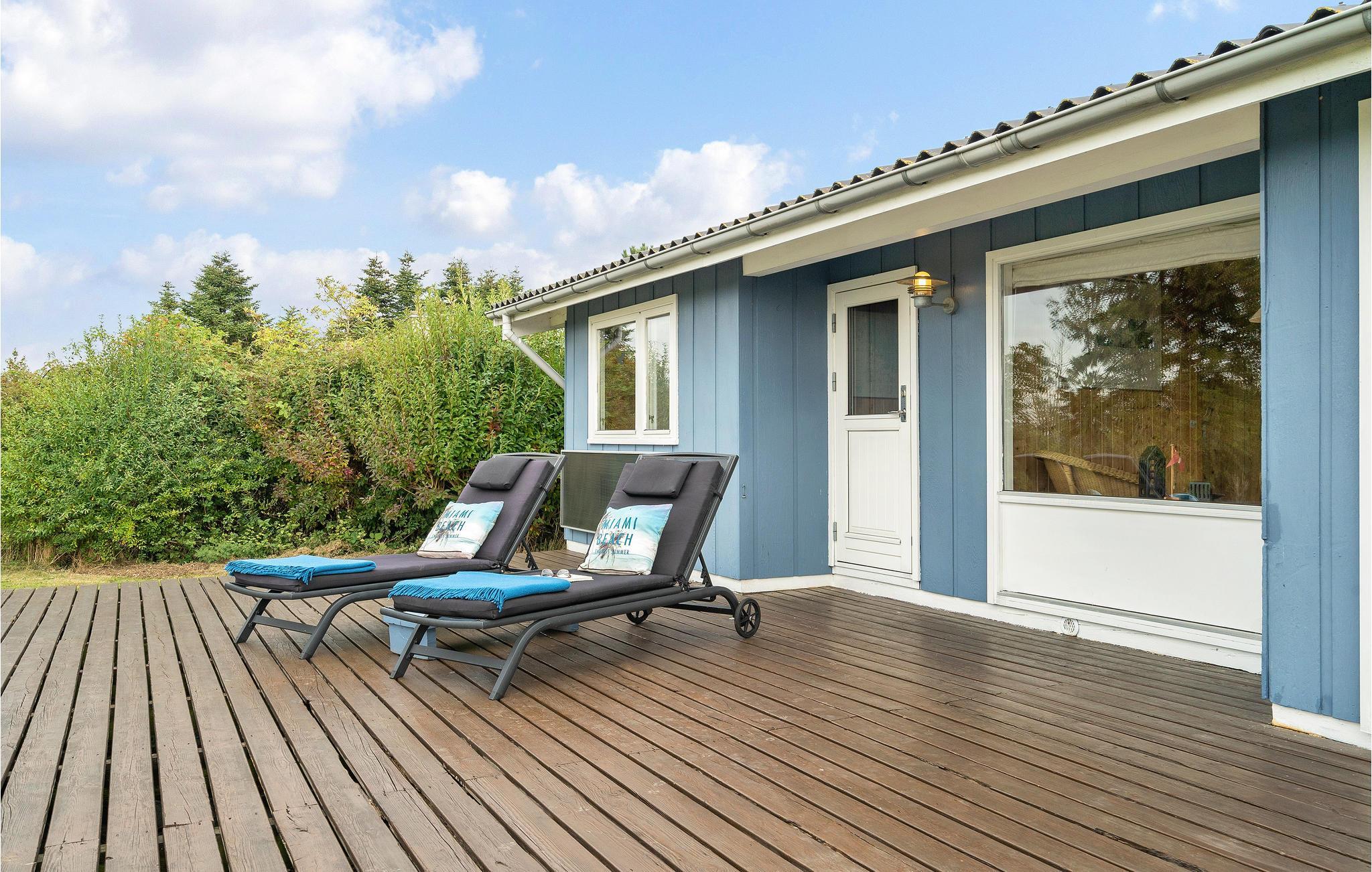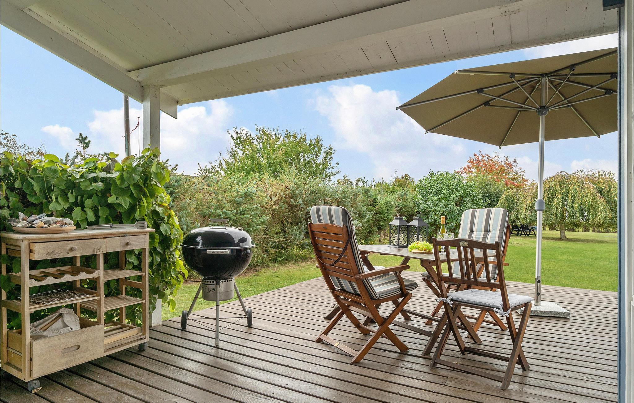 Det bliver ikke meget bedre, end når I starter dagen på den store træterrasse med varm kaffe i kopperne og en fantastisk udsigt udover det blå hav. Faktisk kan hele dagen bruges her. En grill står til rådighed, så et lækkert måltid kan stykkes sammen, og de voksne kan let holde øje med børnene, der leger i haven og sandkassen. Når aftenen falder på kan hyggen fortsætte indenfor omkring brændeovnens knitrende flammer.
