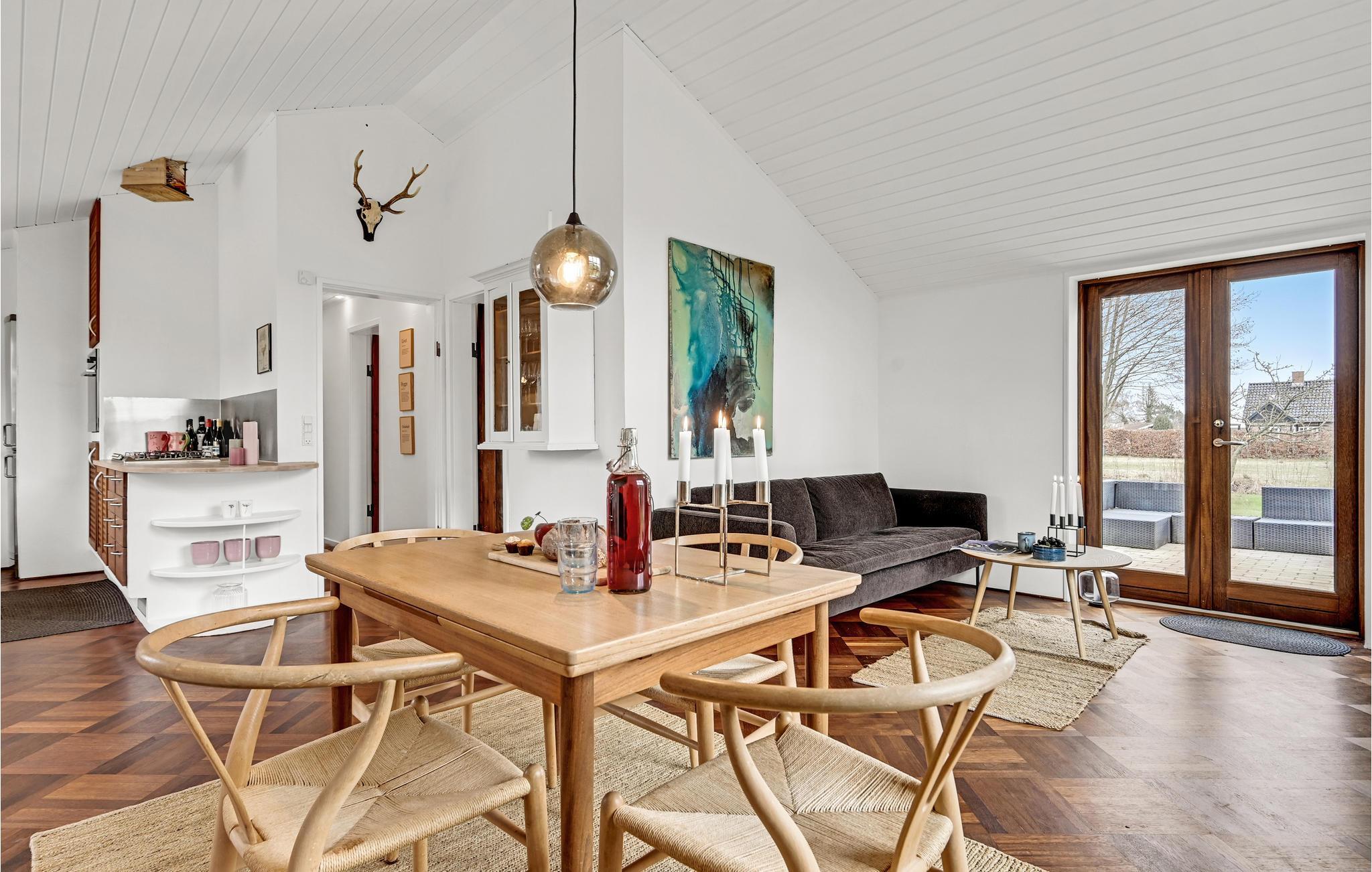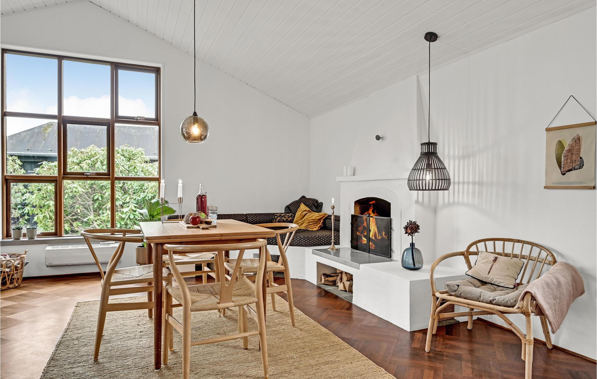 Dette yderst charmerende feriehus inviterer jer og jeres kære til en dejlig ferie i Femmøller Strand. Huset er indrettet med stor sans for detaljen og emmer af en hjemlig feel-good atmosfære. Læs en bog ved siden af den åbne pejs, slap af i sofaen eller tryl jeres yndlingsretter frem i køkkenet. Det smukke hus gør det nemt at slappe af i de smagfulde og hyggelige rammer.