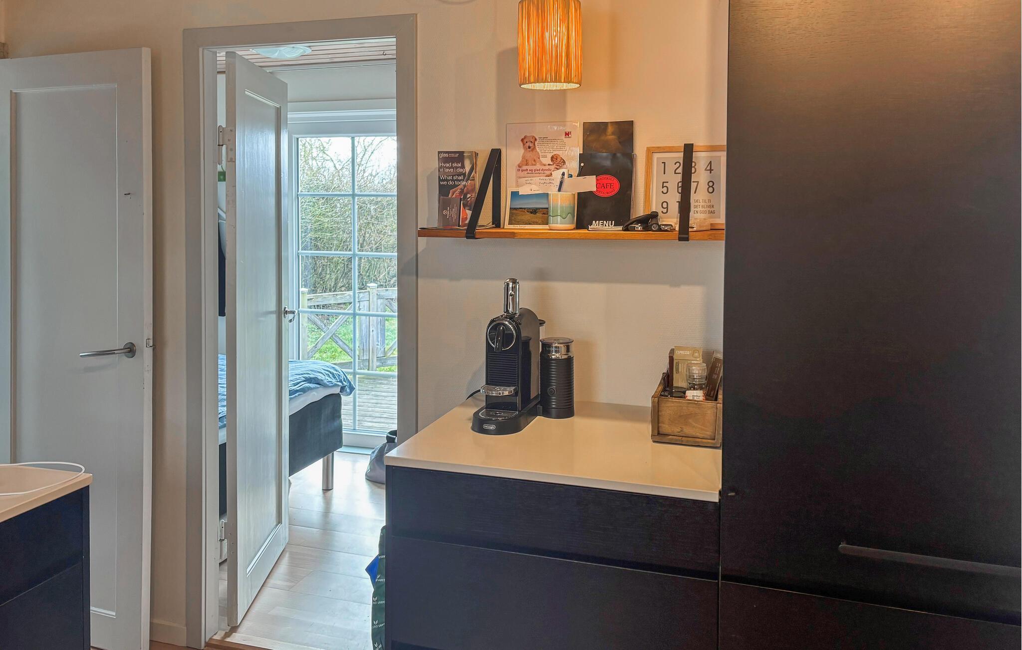 Velkommen indenfor i dette lyse og indbydende sommerhus. De store vinduespartier i stuen sikrer et fantastisk lysindfald, og giver jer mulighed for at nyde haven, selv når I er indendørs. Her er lagt vægt på samspillet mellem det velindrettede interiør og udelivet på de dejlige udearealer. Start dagen med en kop kaffe på den højtbeliggende terrasse, mens I planlægger dagens aktiviteter.