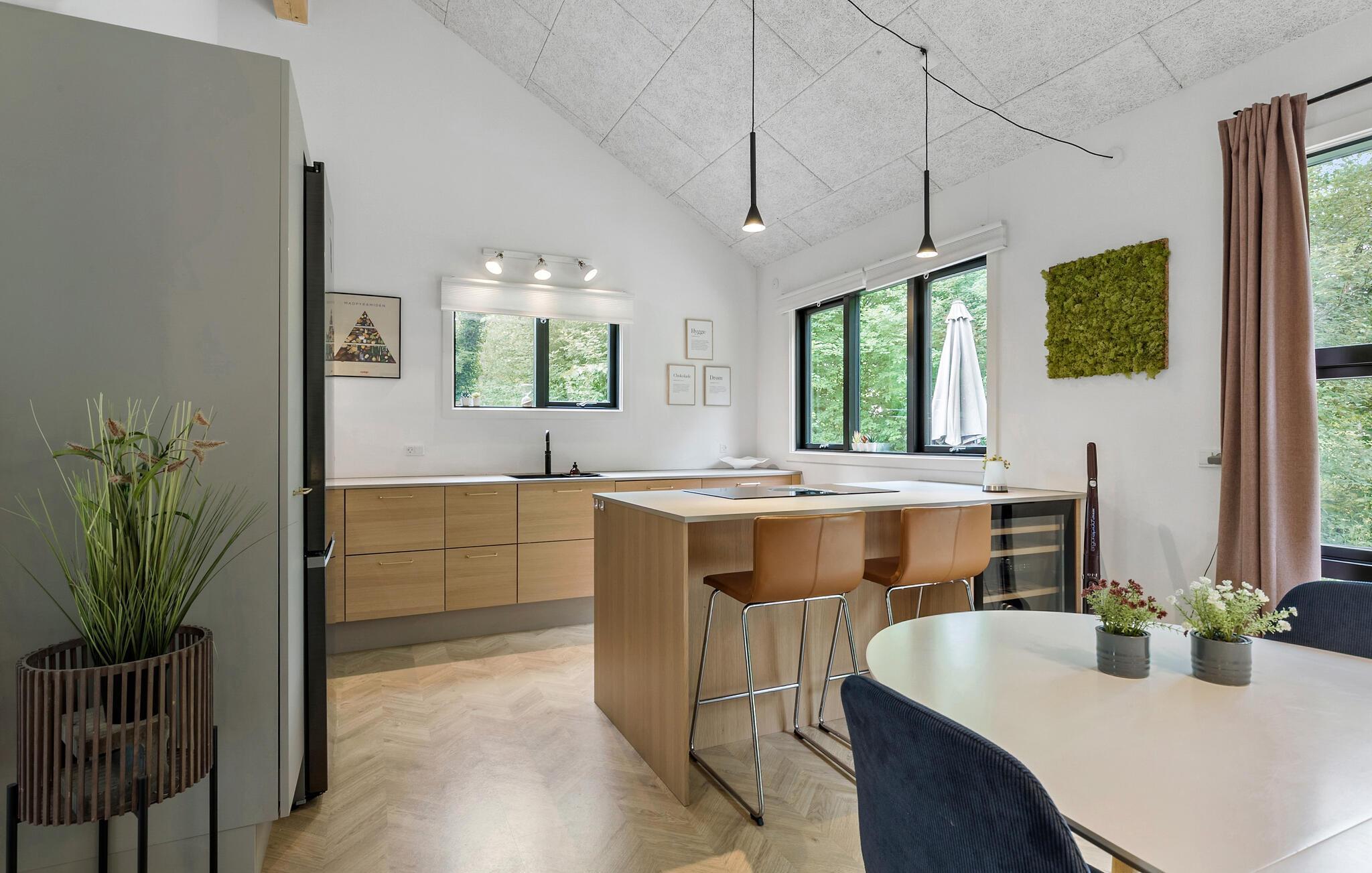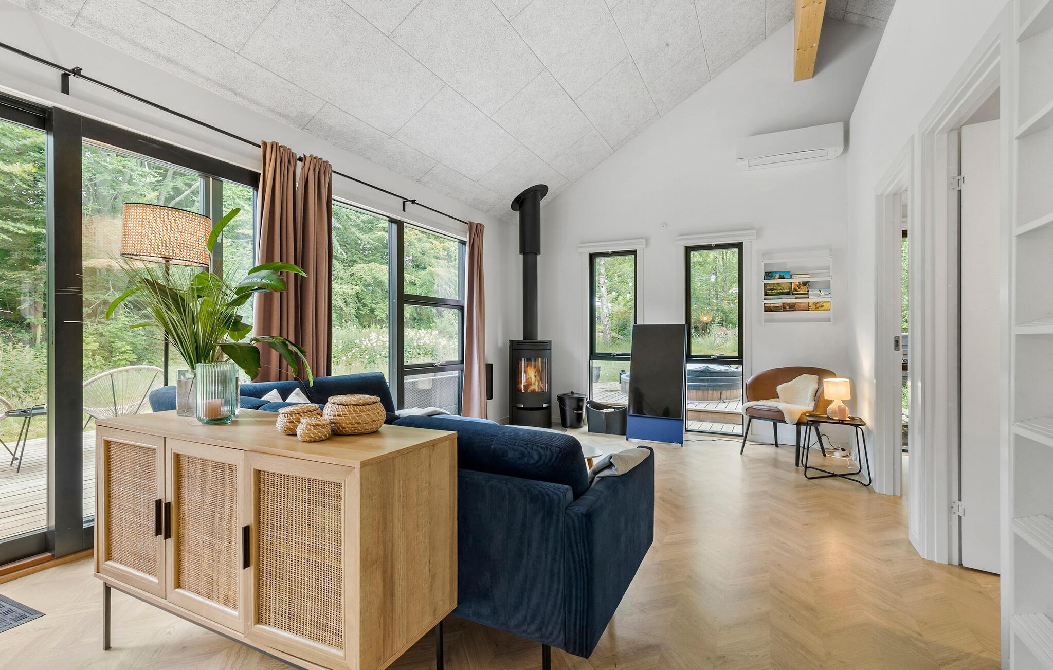 Velkommen til dette moderne sommerhus, som kombinerer komfort og stilfuld indretning midt i den skønne natur. Brændeovnen og den bløde sofa indbyder til ren afslapning med en god film på tv’et. Brug tid på at kokkerere lækre retter i det åbne køkken. Hvis menuen står på grillmad, kan I grille på den hyggelige træterrasse. Her kan I samtidig nyde den smukke sø og naturen omkring huset. Når mørket nærmer sig, kan I hoppe en tur i spaen, lytte til naturens lyde og komme helt ned i gear.