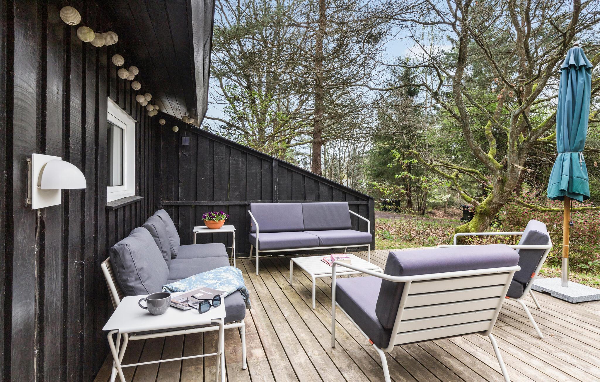 Med sin smagfulde indretning danner dette indbydende hus i idylliske omgivelser de bedste rammer om en dejlig ferie. Efter en lang gåtur ved stranden kan I slappe af i saunaen, nyde jeres måltider med en smuk udsigt til det fri og hygge jer om aftenen i den komfortable sofa.