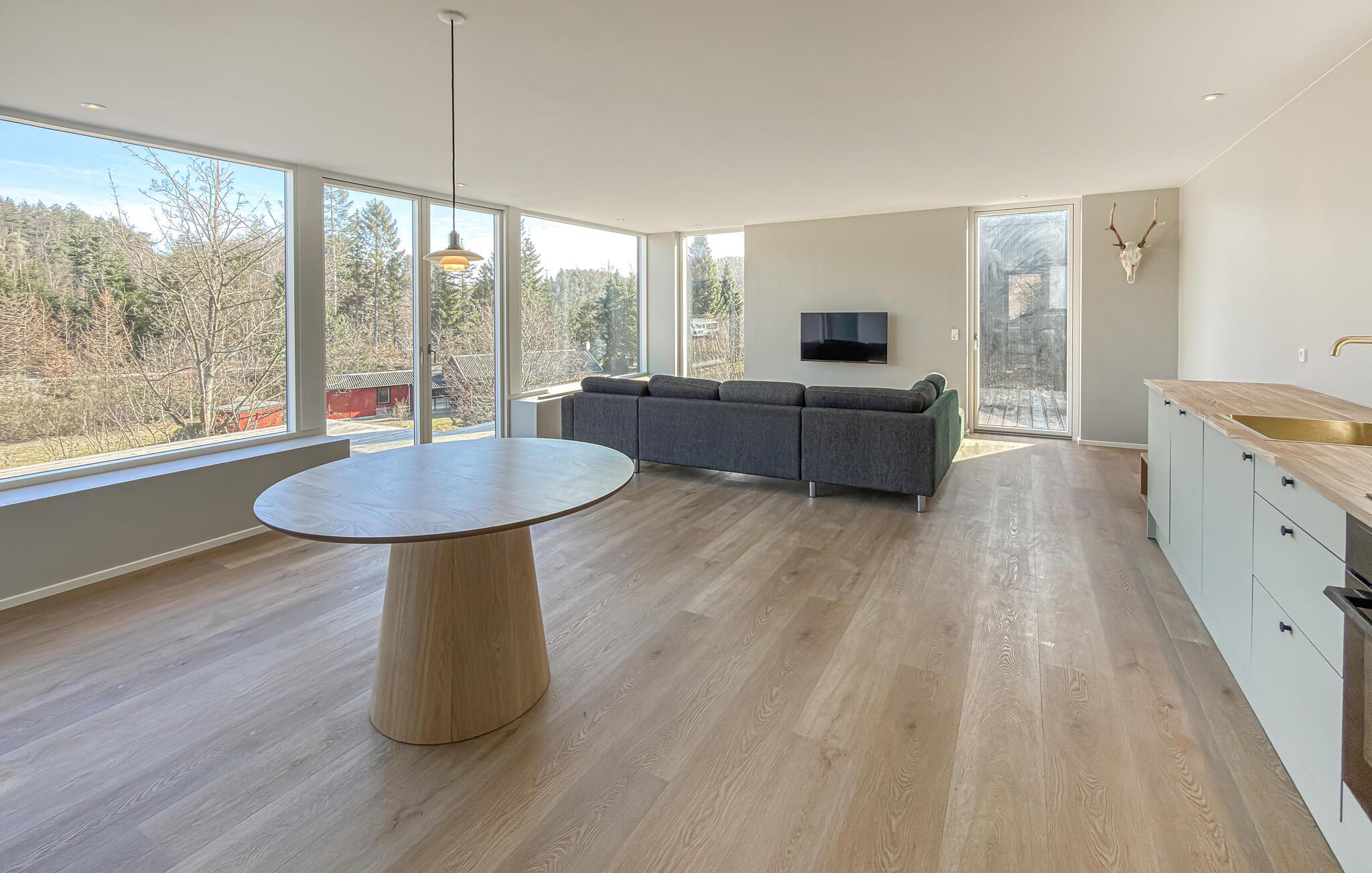 Dette moderne indretningsløsningerede hus er perfekt til en ubekymret flugt fra hverdagen. Lyse værelser, en behagelig sofa og et veludstyret køkken vil få jer til at føle jer hjemme. Stream de nyeste serier eller tilbered lækre måltider, mens god musik skaber en behagelig atmosfære.