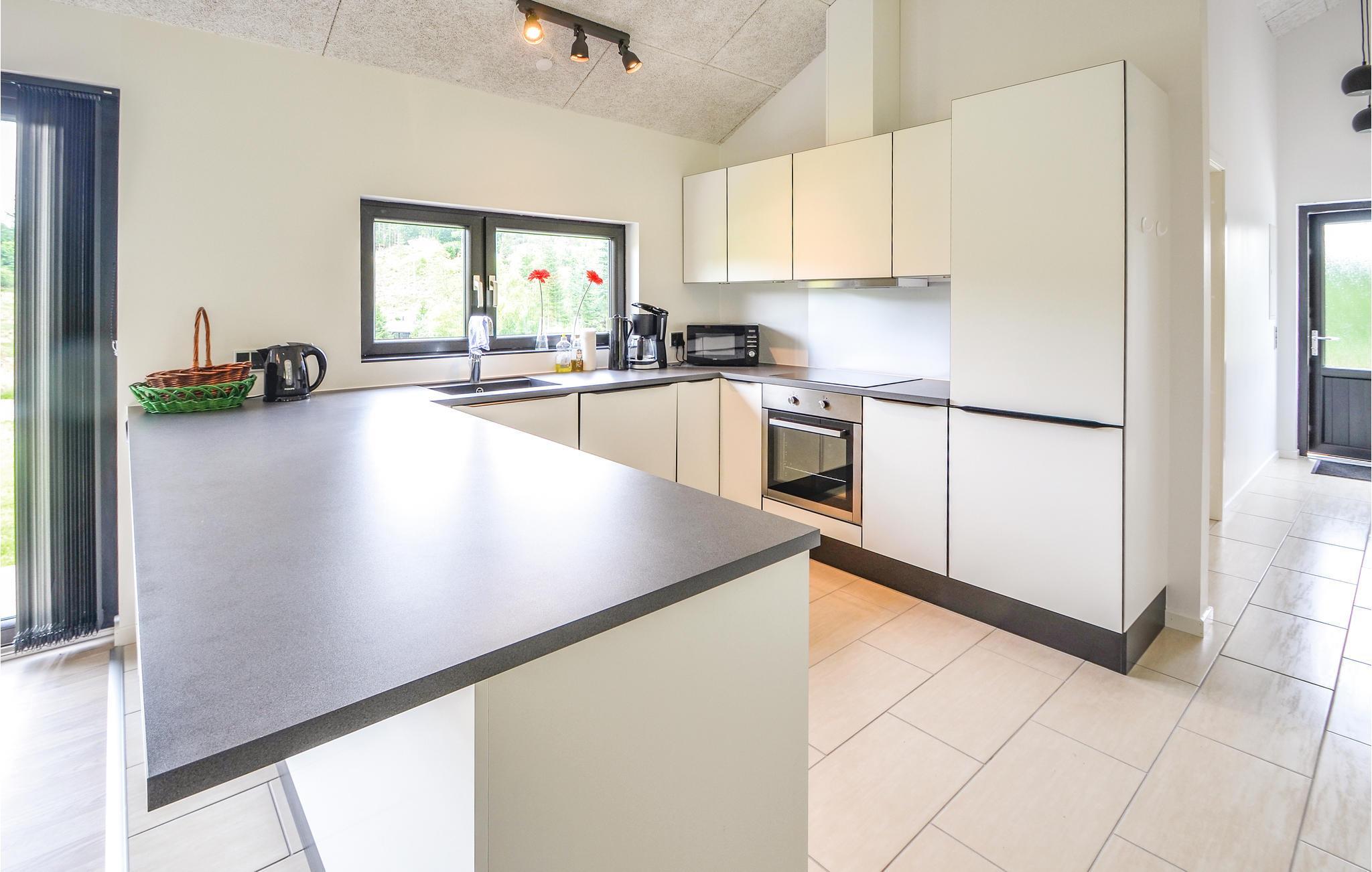 Flot, moderne og stort sommerhus med en dejlig fofriskende swimmingpool, samt spabad og sauna. Huset er beliggende på en dejlig plan grund med anlagt græsareal samt en stor terrasse. Huset er moderne møbleret, veludstyret og godt indrettet med bl.a. fire gode værelser og to badeværelser. Der er gjort ekstra store investeringer i isolering for at reducere energiforbruget i huset, som er meget fordelagtigt. Beliggenheden er i roligt og stille område med varieret terræn og skov. Gode muligheder for løbe og vandreture i omårdet. Kort køreafstand til stranden, hvor der også er mulighed for at nyde en smagsoplevelse på en Gourmet Restaurant.