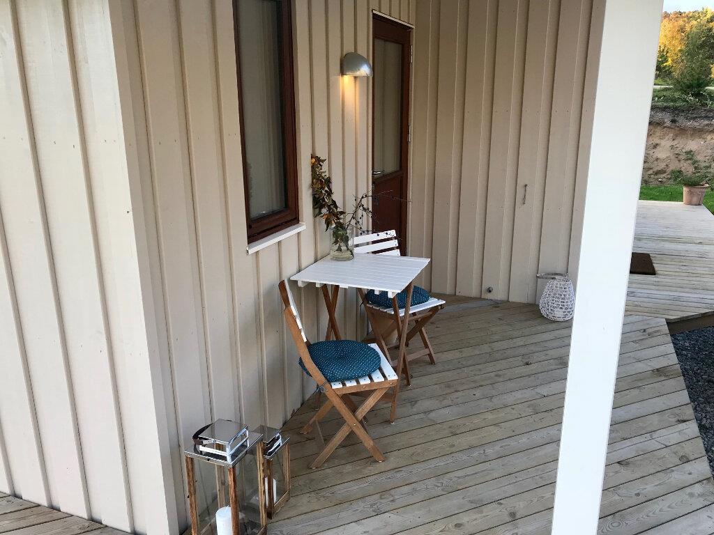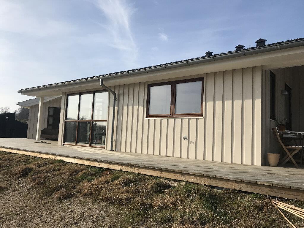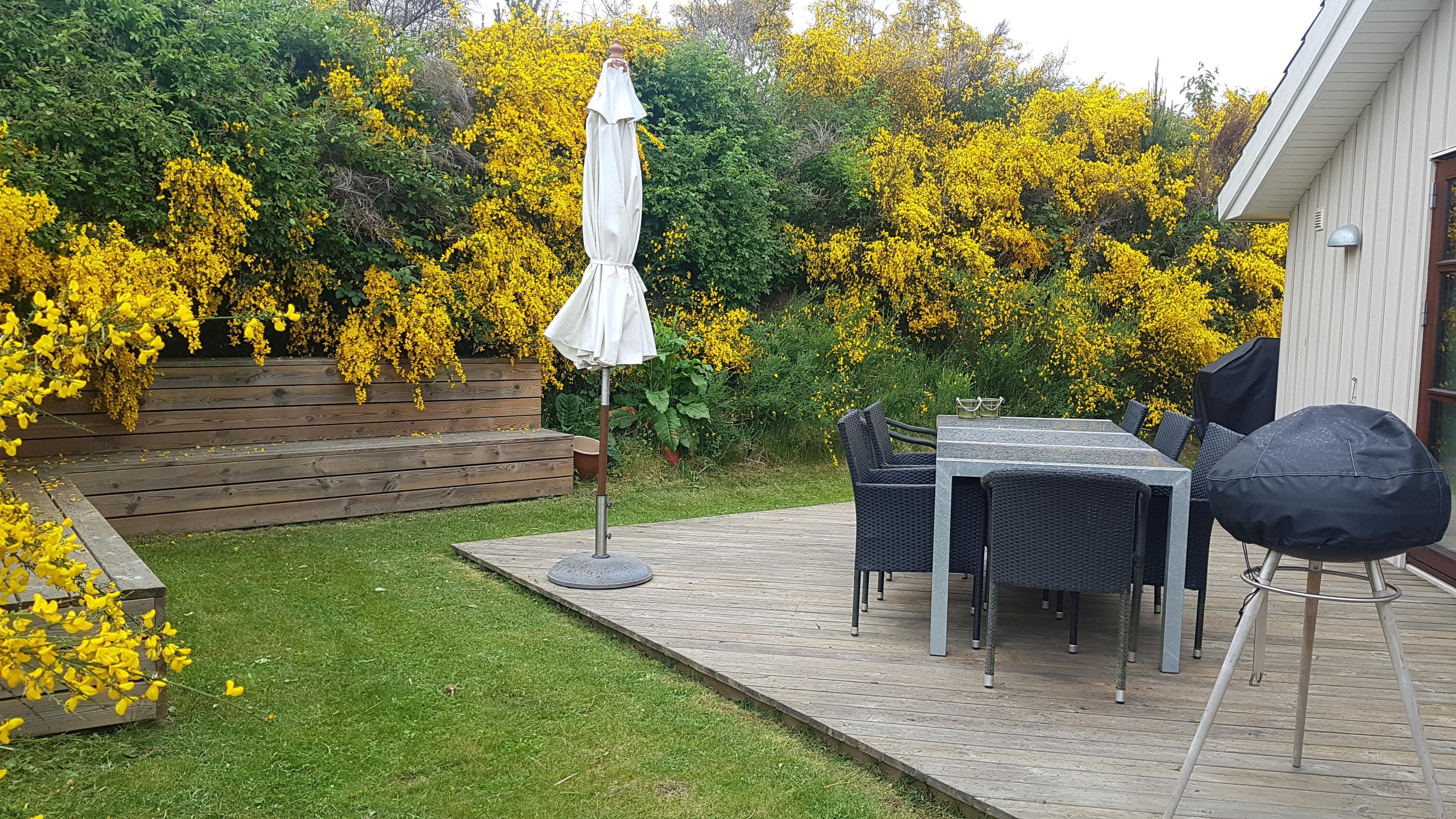 Der er flere terrasser udenfor, hvor man kan sidde og slappe af og nyde den helt unikke udsigt. På den åbne terrasse på 15 m2 er en markise med motordrev. I tilknytning til denne terrasse er der et shelter med plads til 4 personer. Der er naturligvis også havemøbler og en grill, et stort, flytbart bål-fad og en Morsø Pizzaovn. Har I har lyst til at overnatte ude og komme tættere på naturen, er der en shelter (helt tæt på huset) ved vest-terrassen med fin udsigt mod øst.