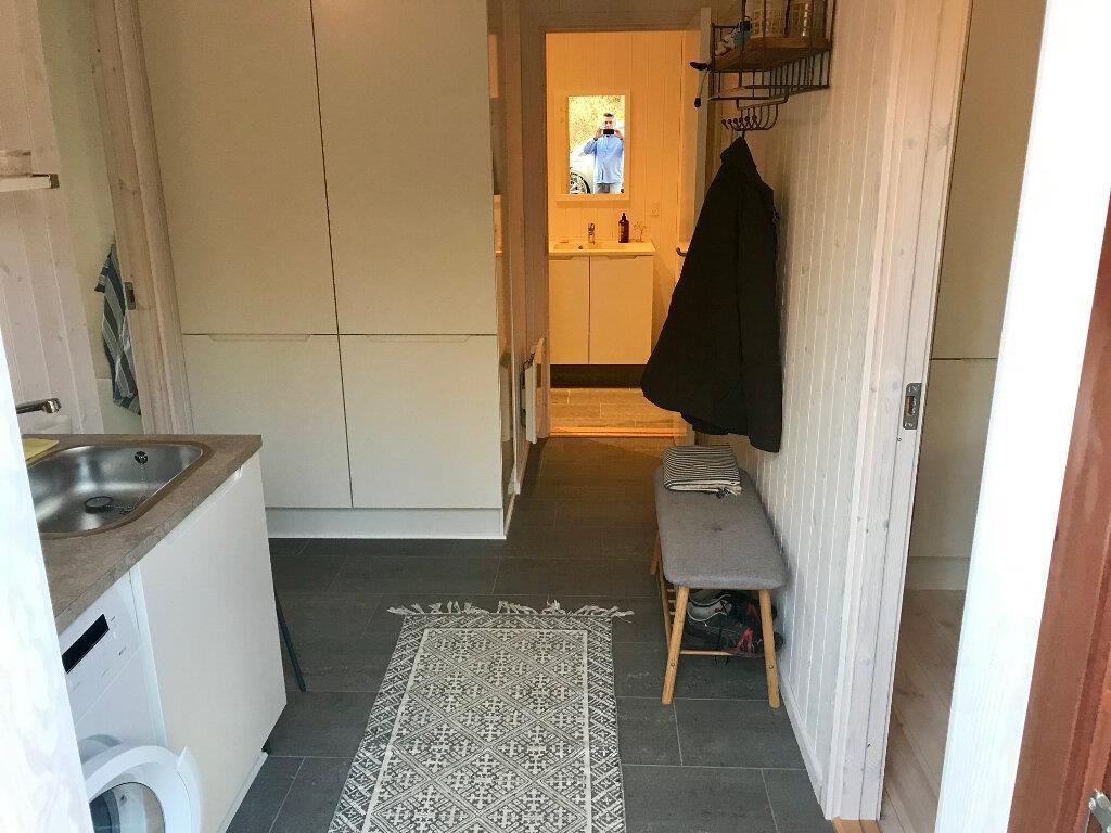 Køkkenet er fuldt udstyret med opvaskemaskine mv. Der er installeret en Qooker ved køkkenvasken – så ud over at tappe koldt/varmt vand fra hanen,