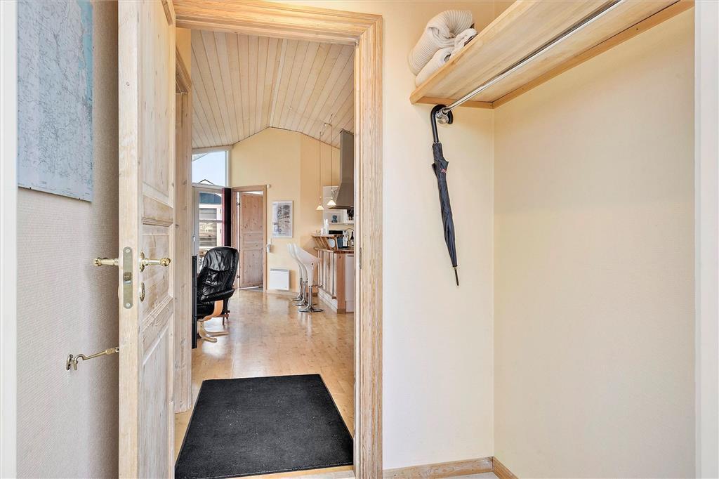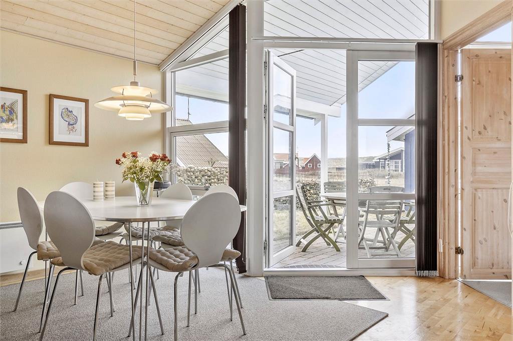 Allerede når du træder ind i sommerhuset, fornemmer du, at her er tænkt på både komfort og feriestemning. Den lyse og hyggelige indretning skaber en afslappet atmosfære, hvor du hurtigt falder til og føler dig hjemme. Huset rummer gode fællesområder med åben forbindelse mellem stue og køkken, så det er let at være sammen – uanset om der skal laves mad, leges, slappes af eller spilles spil ved spisebordet. Store vinduespartier lader lyset strømme ind og giver samtidig et dejligt kig ud til de grønne omgivelser. Uanset om du er på ferie med familien eller gode venner, er der god plads til at være sammen – og også mulighed for at trække sig tilbage med en bog eller en kop kaffe i fred og ro.