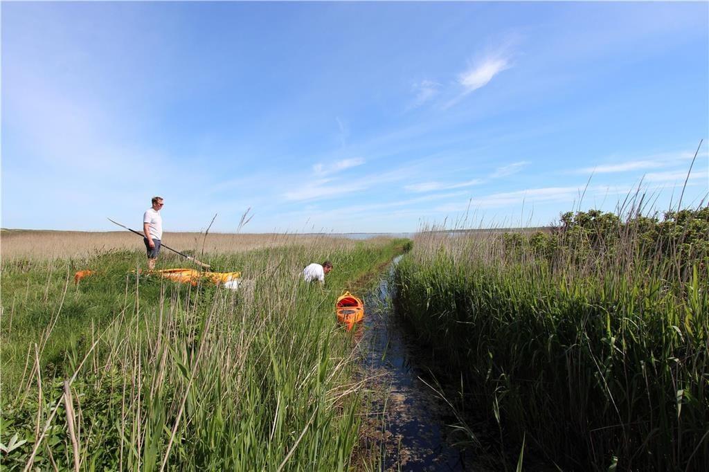 Den store naturgrund omkring sommerhuset giver jer virkelig mulighed for at udfolde ferielivet i det fri. Her er både hængekøjer, hvor du kan dase med en god bog, og en beachvolleybane, der lægger op til venskabelige dueller i solskinnet. Vil du på vandet, ligger Ferring Sø lige for dine fødder – og huset har hele fem kajakker og to SUP-boards til fri afbenyttelse, så længe du husker redningsvesten. Der findes nogle i huset, men de dækker ikke alle størrelser, så medbring gerne dine egne for en sikkerheds skyld. Når solen skinner, og bølgerne slår blidt mod bredden, er det svært at finde en bedre måde at nyde sommerdagen på. Og når mørket falder på, kan I tænde op i grillen og nyde aftensmaden under åben himmel, mens duften af mad og lyden af latter breder sig over terrassen.