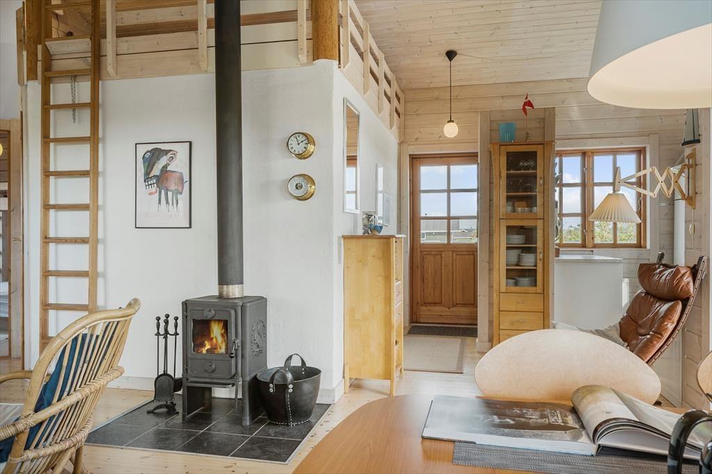 Når du træder indenfor i sommerhuset, bliver du mødt af en lys og åben indretning, der skaber en behagelig atmosfære. Her er der plads til at koble af, hvad enten du samler familien i stuen til en hyggelig filmaften eller nyder en stille stund med en bog i hånden. Sommerhuset har to soveværelser og en rummelig hems, som giver ekstra muligheder for at finde en hyggelig krog. Hemsen, med sin placering nær køkkenet, er især et hit blandt børnene, der kan lege og hygge sig, mens du tilbereder dagens måltider. Den åbne stue og køkkenet er husets naturlige samlingspunkt, hvor vinduer lukker naturen indenfor og giver et fantastisk lysindfald med udsigt over det smukke landskab og Ferring Sø.