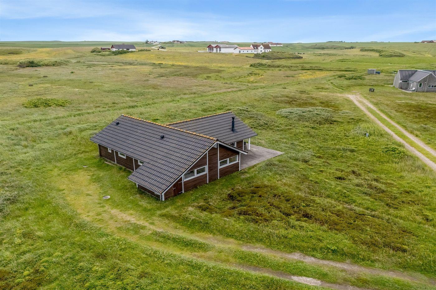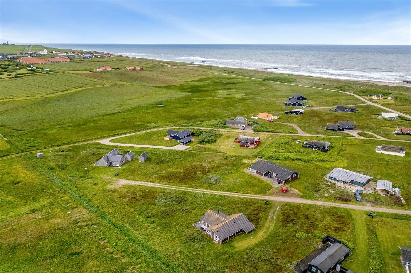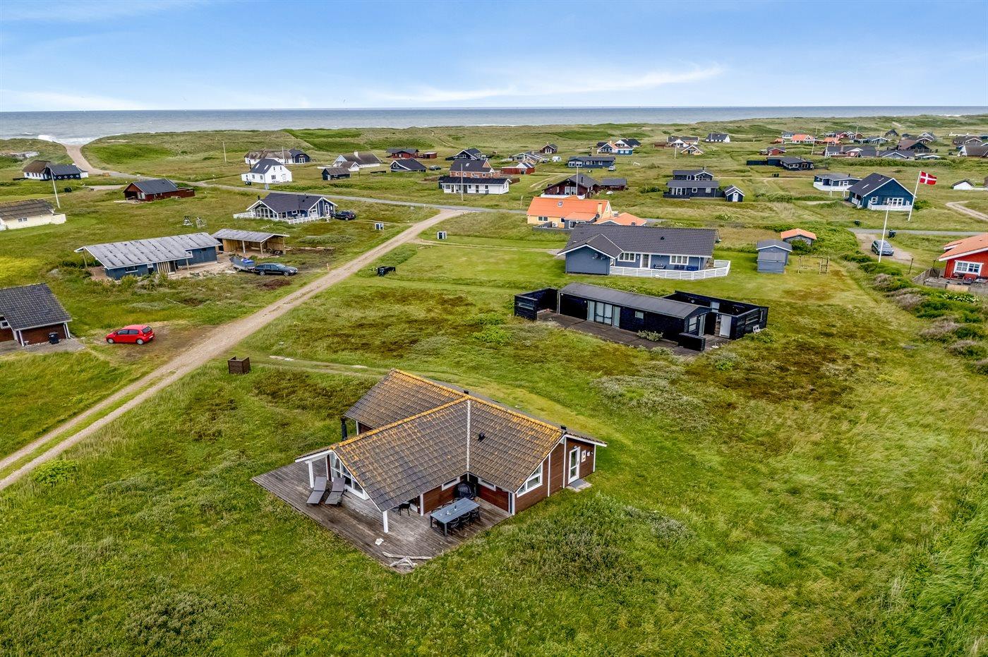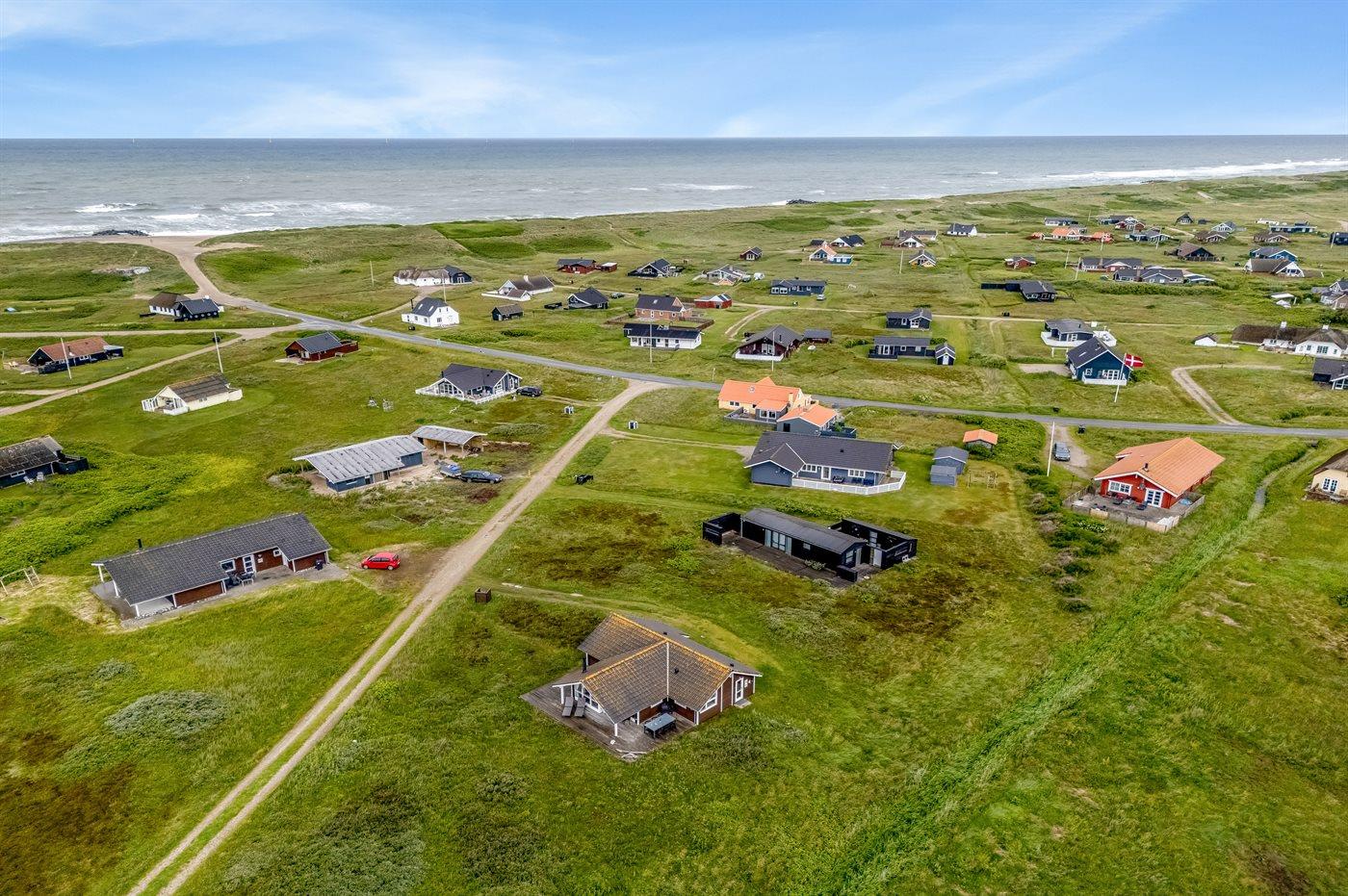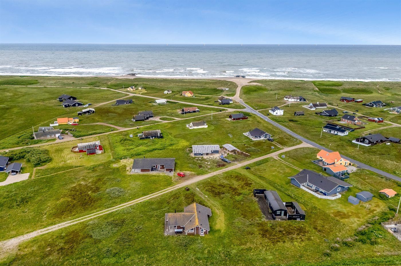 Ferieboligen er beliggende på en 2045 m² stor klitgrund. Der er 250 m til havet. Nærmeste forretning er beliggende i en afstand af 2500 m. Til ferieboligen hører åbent terrasseareal. Der er installeret stik til opladning af elbil. Type 2 stik. Parkering ved ferieboligen.