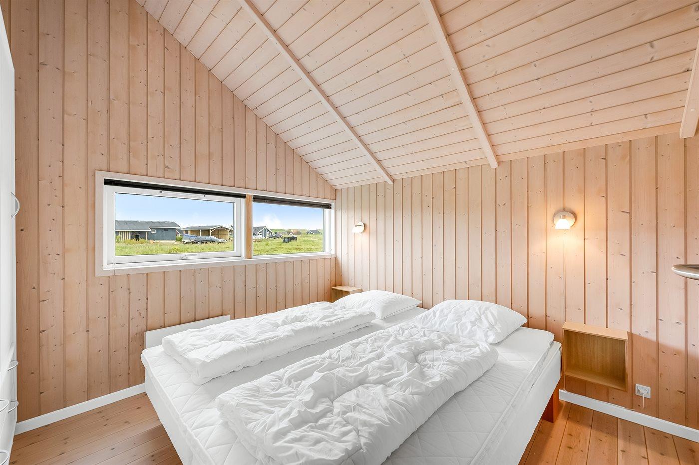 Der er i alt 3 soveværelser. Sovepladserne fordeler sig på: 4 sovepladser i dobbeltsenge. 2 sovepladser i enkeltsenge.