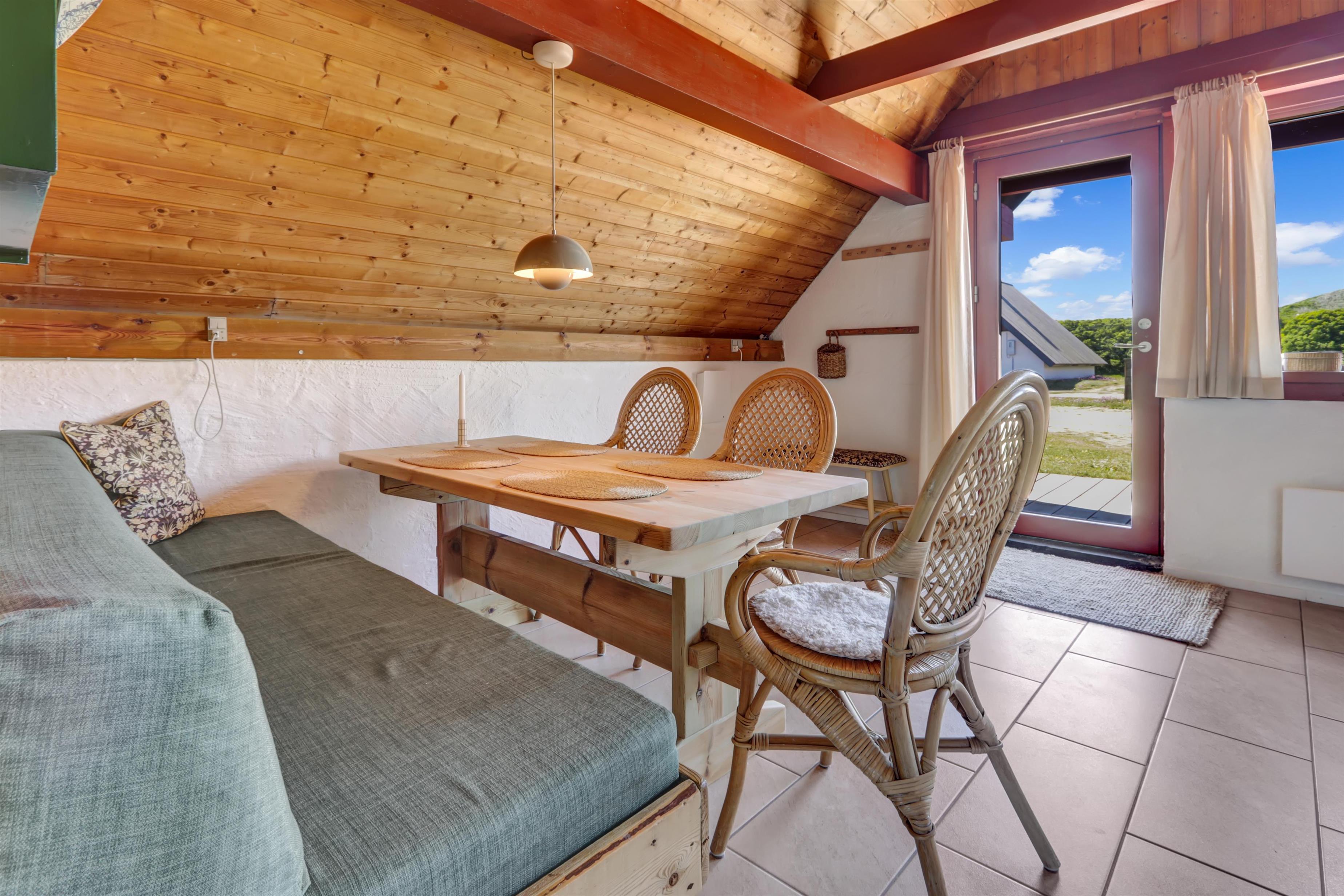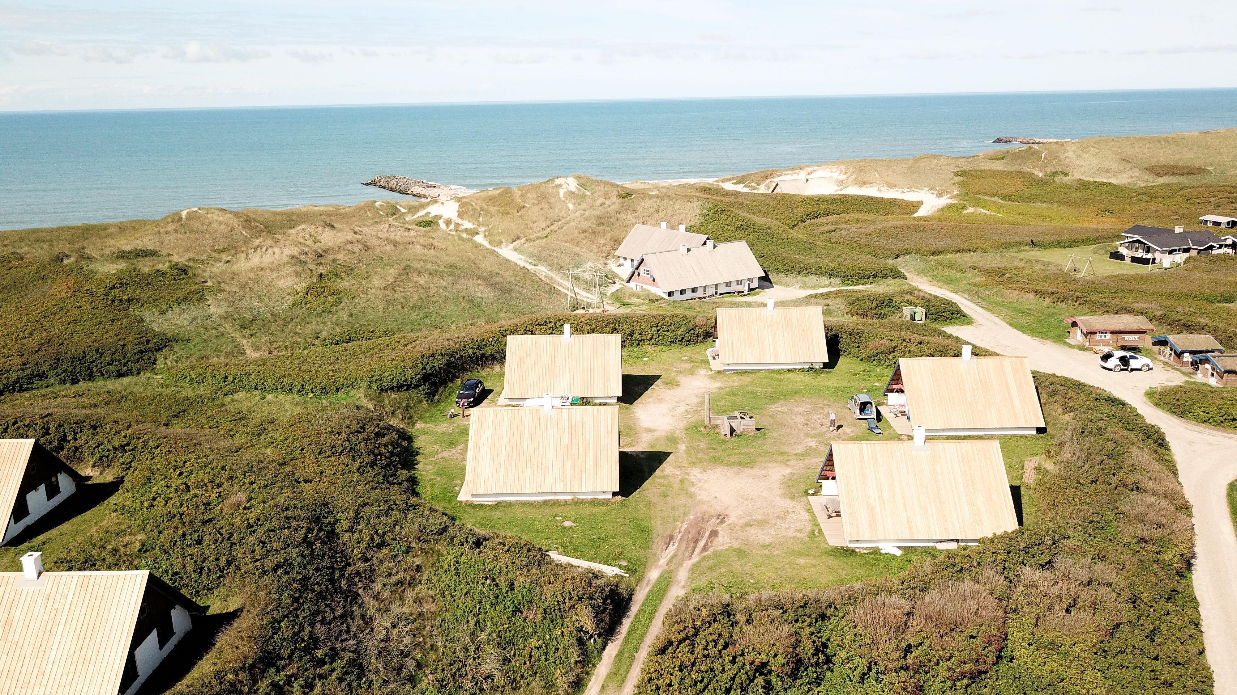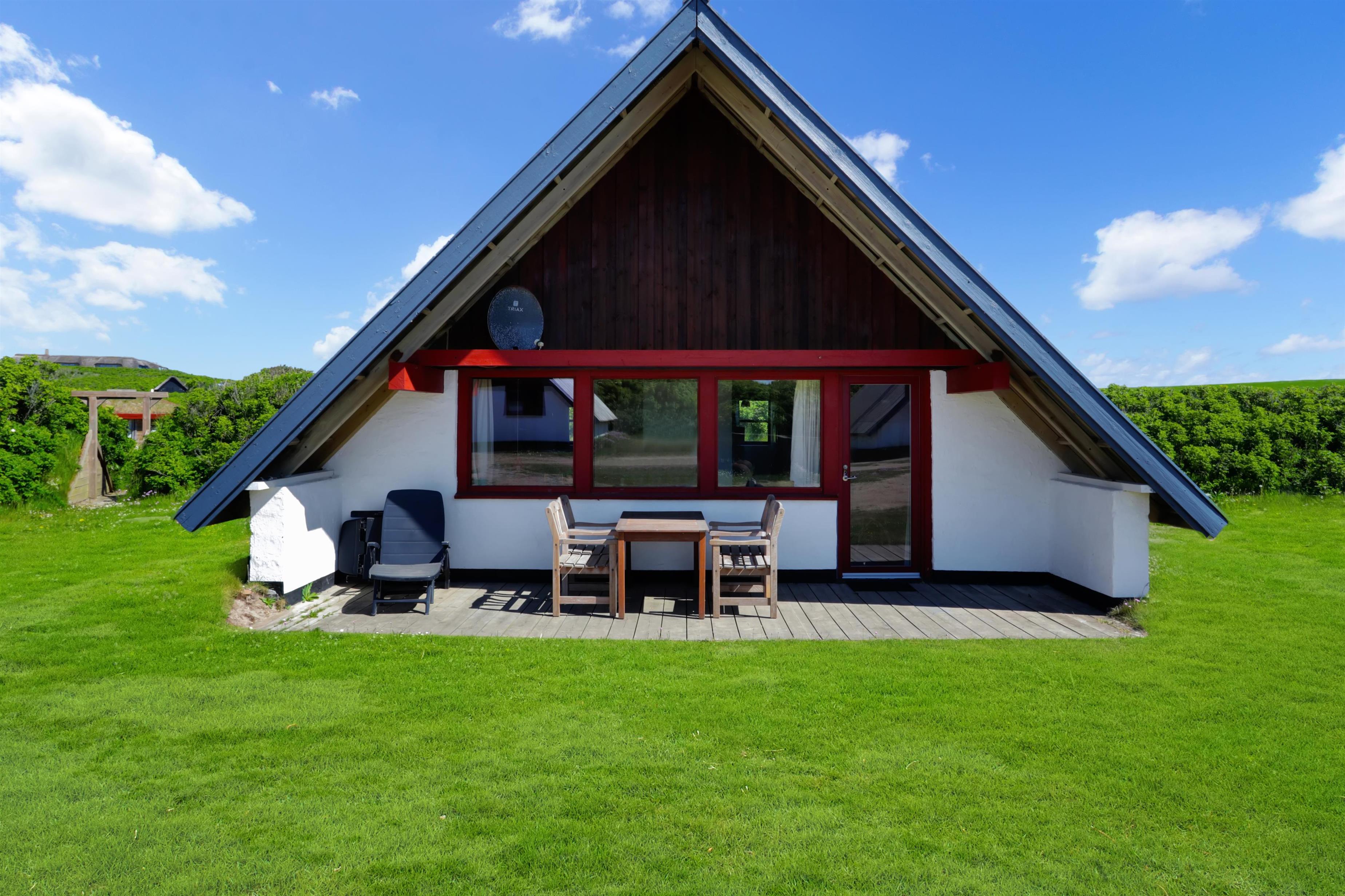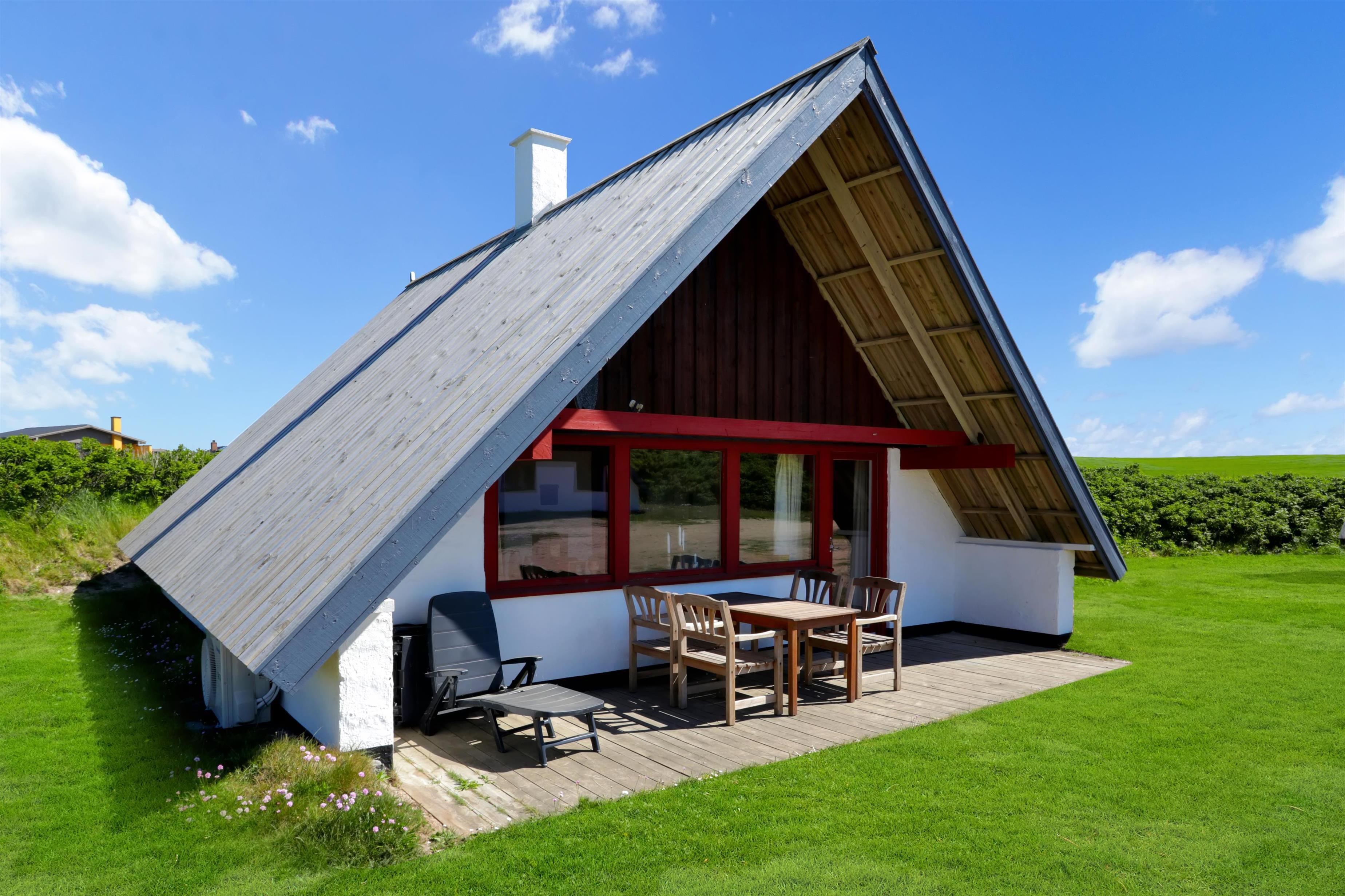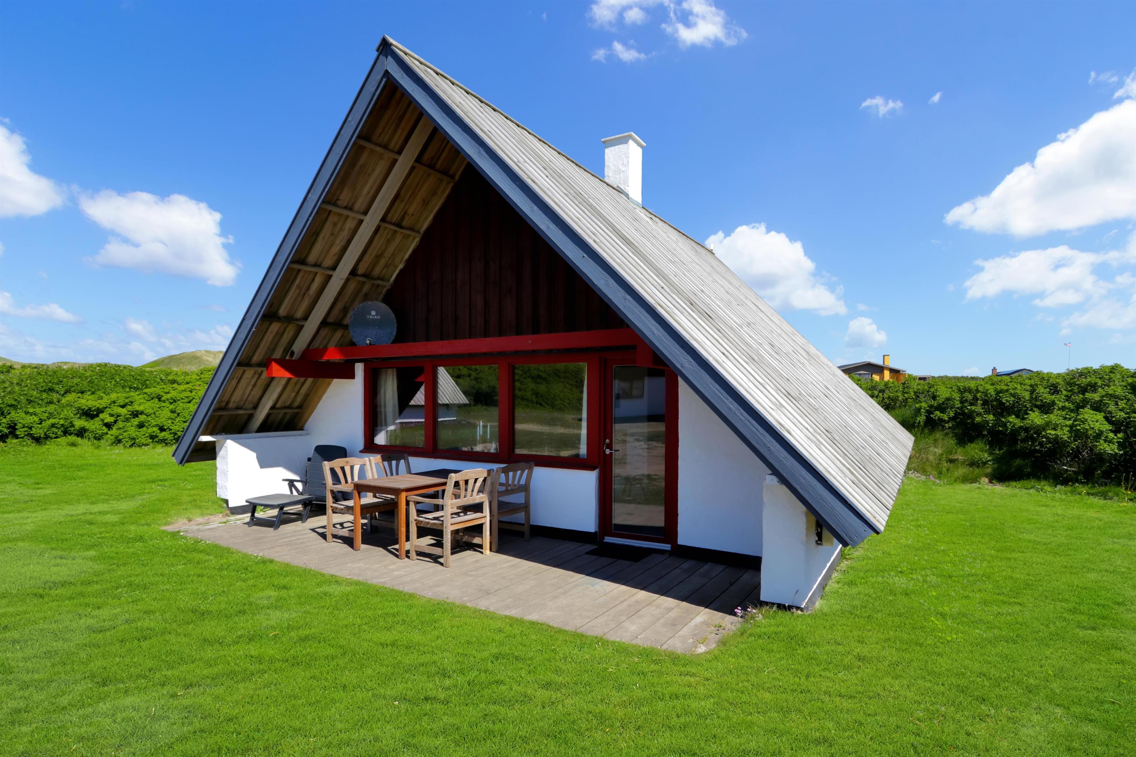 Fra opholdsstuen er der udgang til en lille, overdækket terrasse med havemøbler, 2 solvogne og grill. Huset er en del af Fjaltring Ferieby som består af 25 næsten identiske A-huse fordelt i 5 cirkler. Hele Feriebyen ligge i en dejlig ”gryde” i det fredede klitlandskab kun ca. 200m fra Vesterhavet. Ved fælleshuset er der el-bil-oplader til rådighed. Nyd en økonomisk ferie i et enkelt feriehus med en helt unik beliggenhed. Parker bilen og nyd at I resten af ferien kan gå til stranden på under 5 minutter. Oplev det brusende Vesterhav som hverdag byder på nye oplevelser. Gå en tur eller dyrk den daglige motion langs med havet, i det smukke landskab eller udforsk områdets mange andre muligheder.