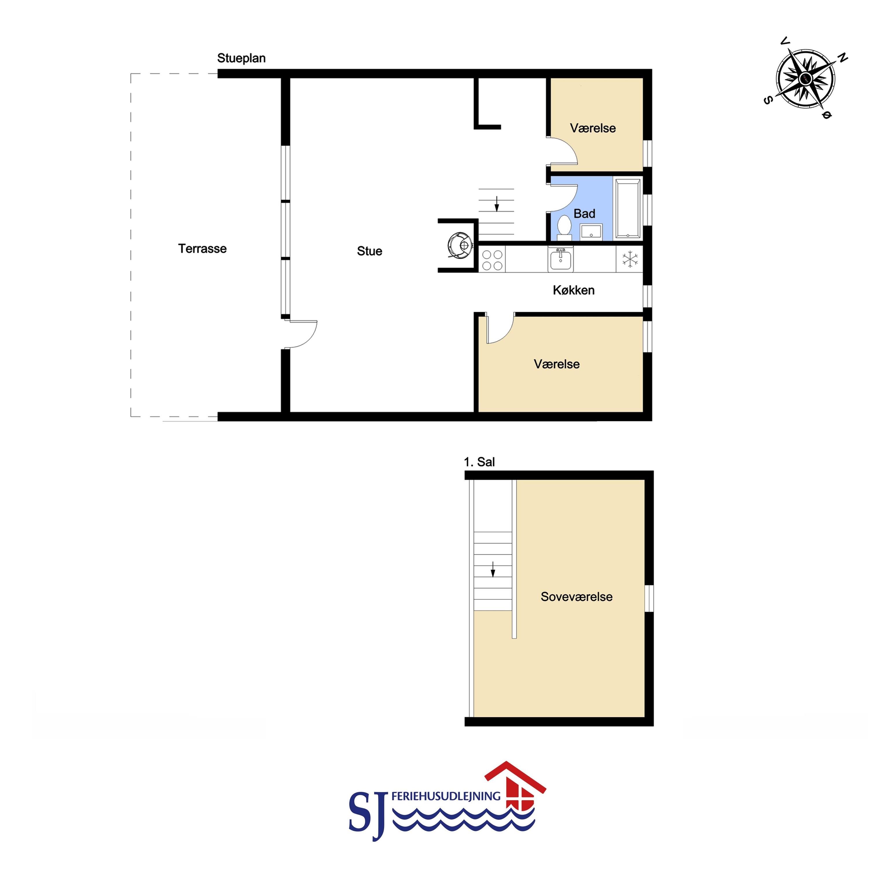 Udenfor huset er der en sydvest-vendt terrasse med havemøbler og grill. Terrassen er bindeled mellem huset og den omkringliggende natur, og bidrager i høj grad til, at følelsen af ferie, fred og ro kan sænke sig. Huset er en del af Fjaltring Ferieby som ligger klinet op ad klitterne ved Fjaltring Strand. Lige på den anden side af klitten ligger noget af det flotteste badestrand som Danmark har at byde på. Stranden og havet ligger til fri afbenyttelse året rundt.