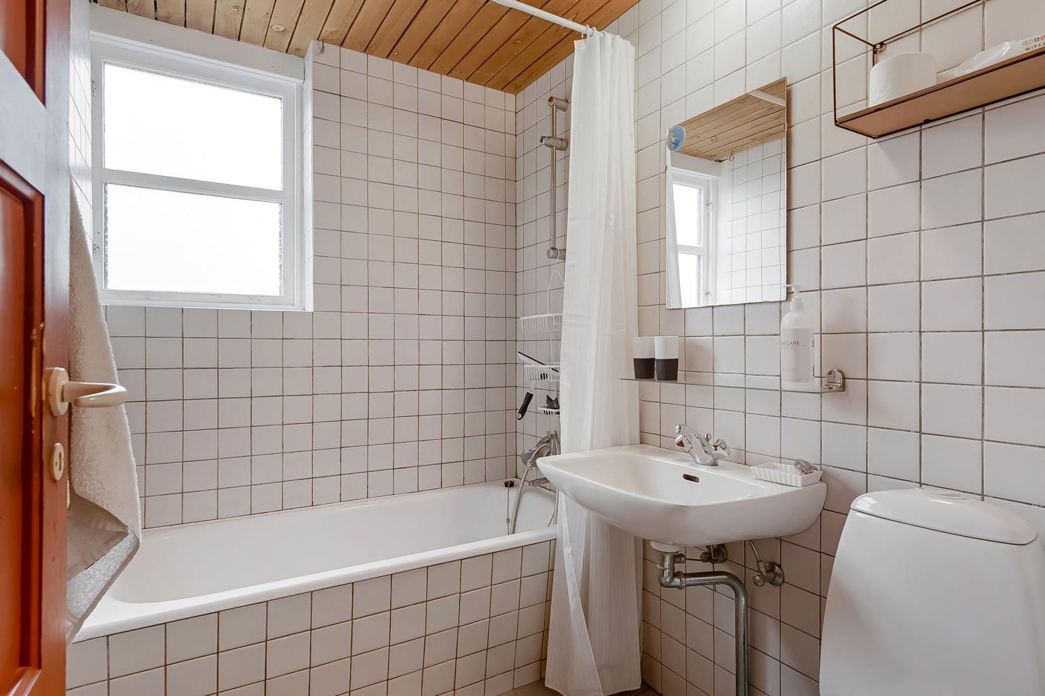 Feriehuset er på ca. 90 m2 og fremtræder næsten færdigrenoveret. Der er en hyggelig lys opholdsstue med højt til loftet. Der er gode, komfortable møbler, og på kølige aftener er det muligt at gøre opholdet behageligt ved at tænde op i brændeovnen og/eller varmepumpe. Der er installeret et nyt køkken med afdæmpede blå farvenuancer. Køkkenet indeholder de fleste moderne bekvemmeligheder såsom køl og frys, keramiske kogeplader, ovn og opvaskemaskine. Hvis feriehygge indbefatter hjemmelavet mad, så byder huset på rig mulighed dertil. Huset giver plads til 2 soveværelser i stueplan med i alt 3 sovepladser. Desuden er der en hems med to store enkeltsenge, som kan danne en dobbeltseng. Badeværelset er udstyret med toilet, håndvask, badekar og bruser.