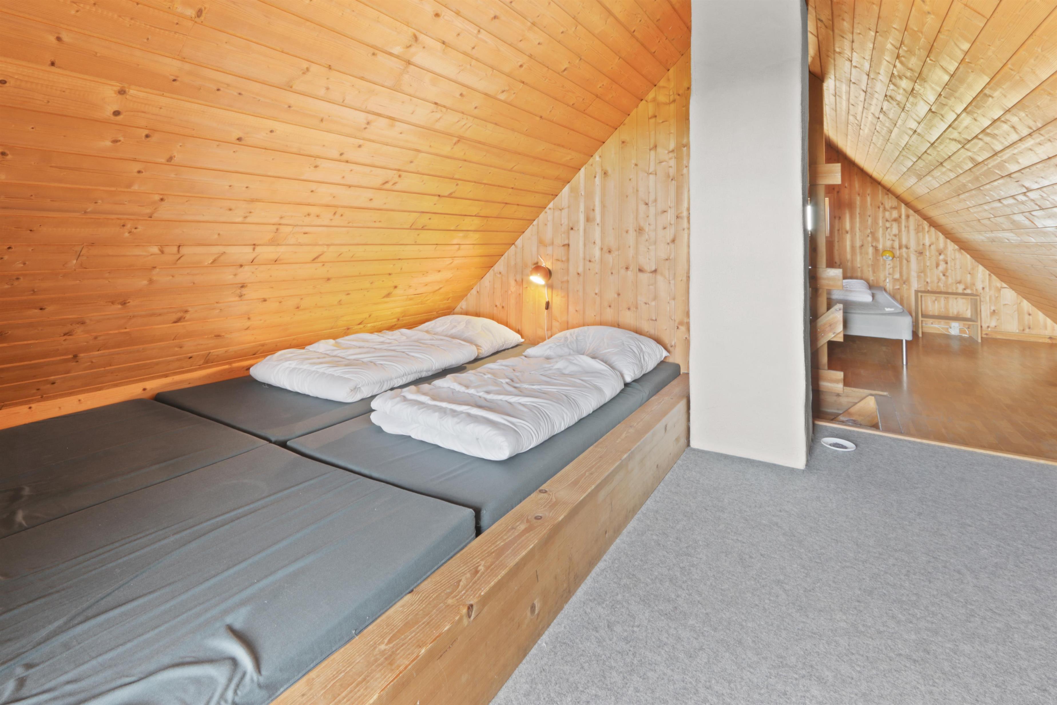 Rustikt sommerhus på100m2 med 2 soverum (1DS, 4ES). 2 åbne soverum på første sal med 1 DS og 2ES. sal. 2 ES i vinkel i værelse i stueplan. Huset er enkelt indrettet med en opholdsstue med polstermøbler, TV med danske og tyske programmer og pejs. Enkelt køkkenhjørne med elektrisk komfur med 4 kogeplader og køleskab med lille fryseboks. Der er installeret en varmepumpe. Badeværelse med toilet, håndvask og bruser. Klinkegulve med gulvvarme i stueplan. 2 husdyr tilladt.