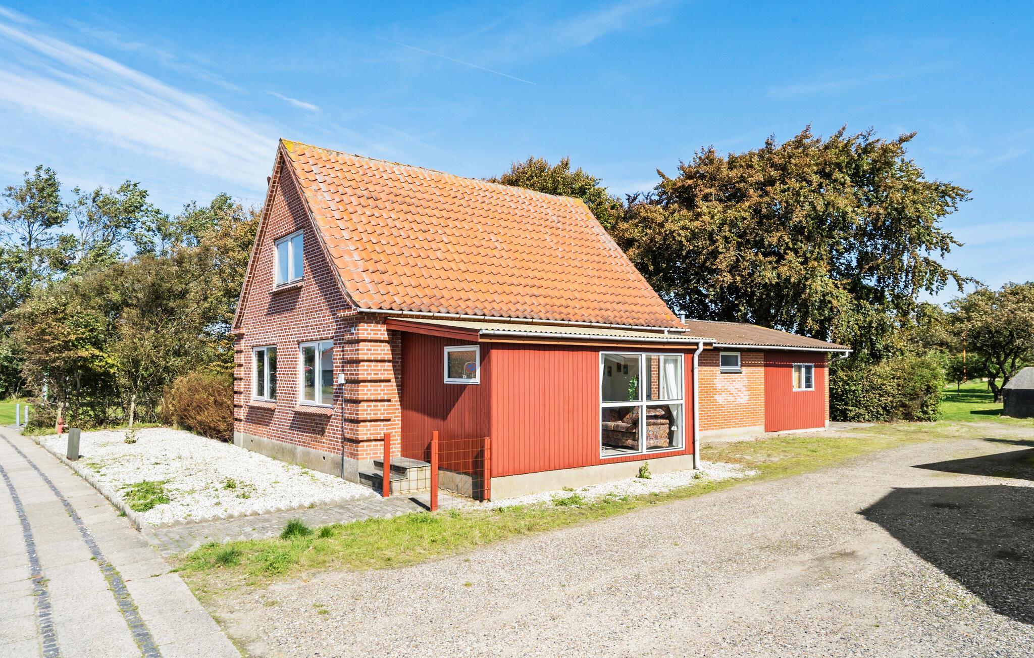 Stilfuldt feriehus i Bøvlingbjerg med hyggeligt aktivitetsrum, overdækket terrasse og bålplads nær Fjaltring Strand.