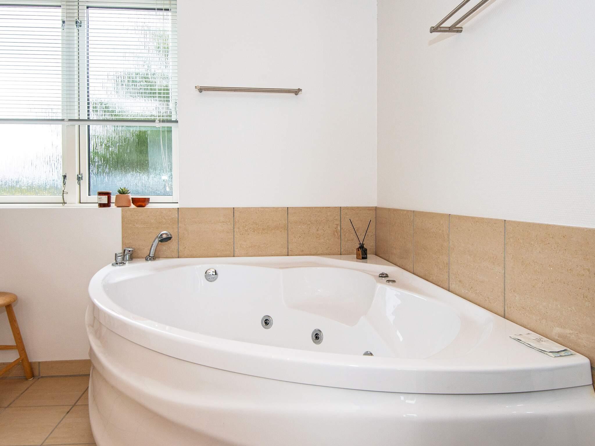 Foruden badeværelset med spabad og gulvvarme indeholder huset tre soveværelser fordelt på to med dobbeltsenge og det sidste er indrettet med to enkeltsenge.