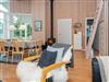 Hjertet af sommerhuset er den kombinerede opholds- og spisestue, der ligger i åben forlængelse af det veludstyrede køkken. I stuen er der et stort vinduesparti, der giver et godt lysindfald og hvor I kan sidde i stuen og nyde naturen mens I luner jer ved brændeovnens skær på en kølig sommeraften.