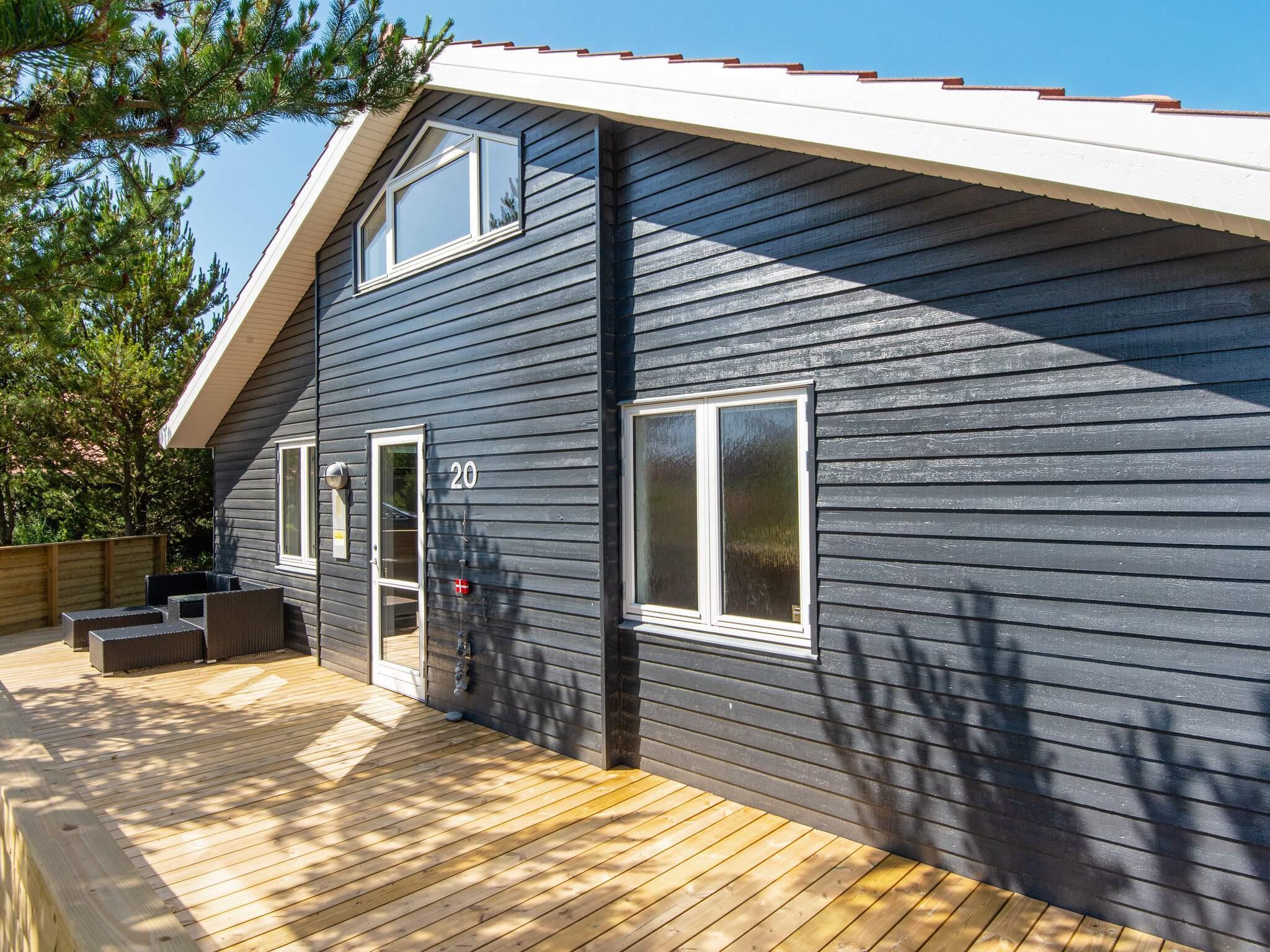 Huset er omgivet af en stor træterrasse, som giver mulighed for at finde flere læfyldte kroge, så I kan nyde solen på en solrig sommerdag. Udlejes ikke til ungdomsgrupper.