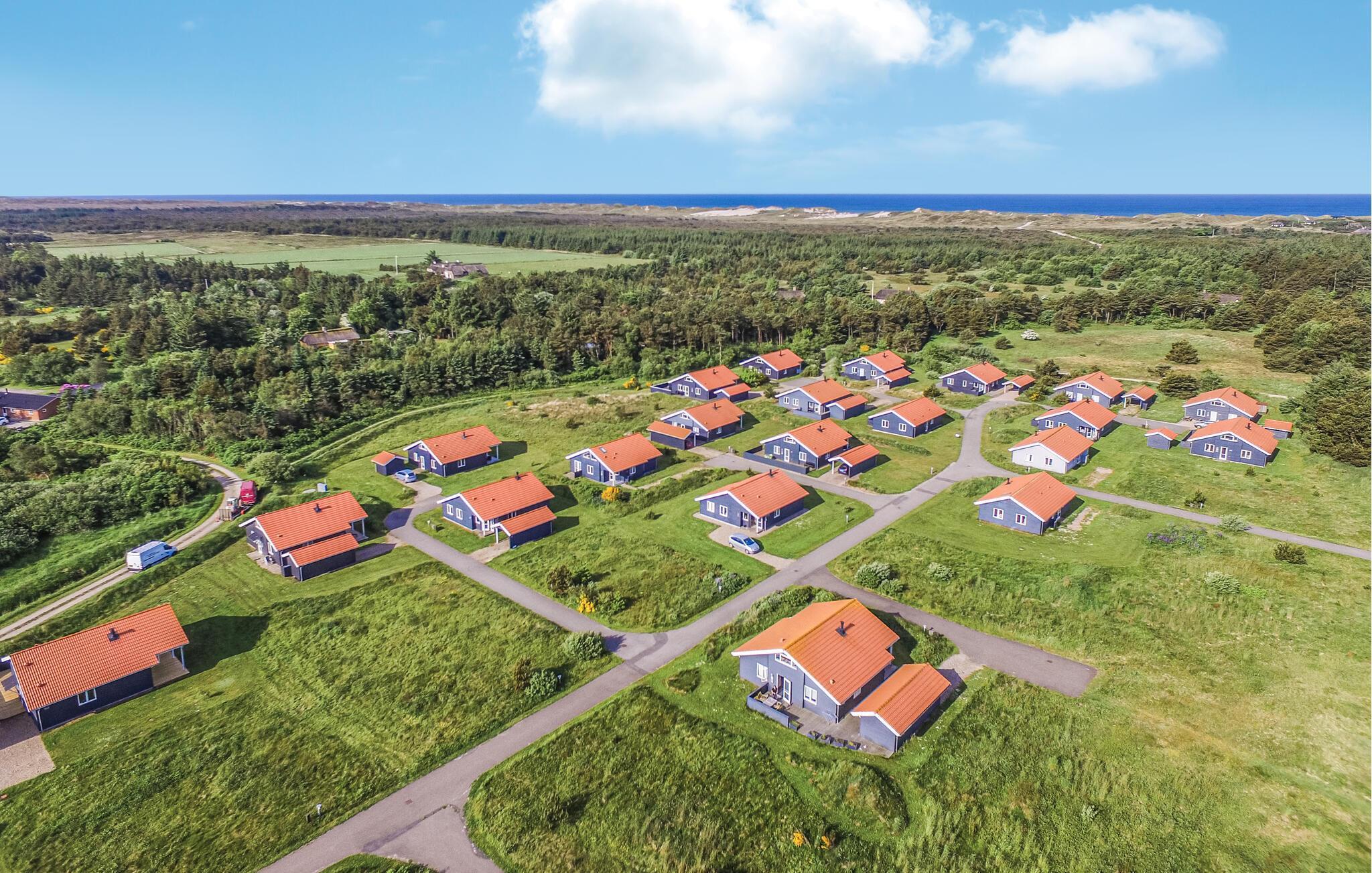 Hyggeligt feriehus nær Vesterhavet med spa, terrasse og adgang til mange aktiviteter i naturskønne omgivelser.