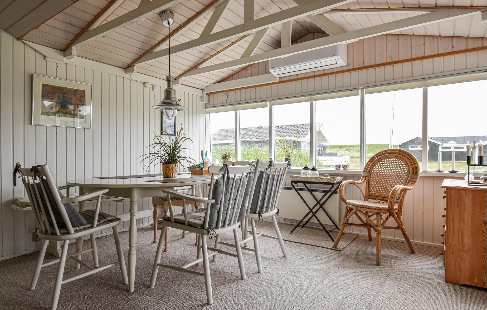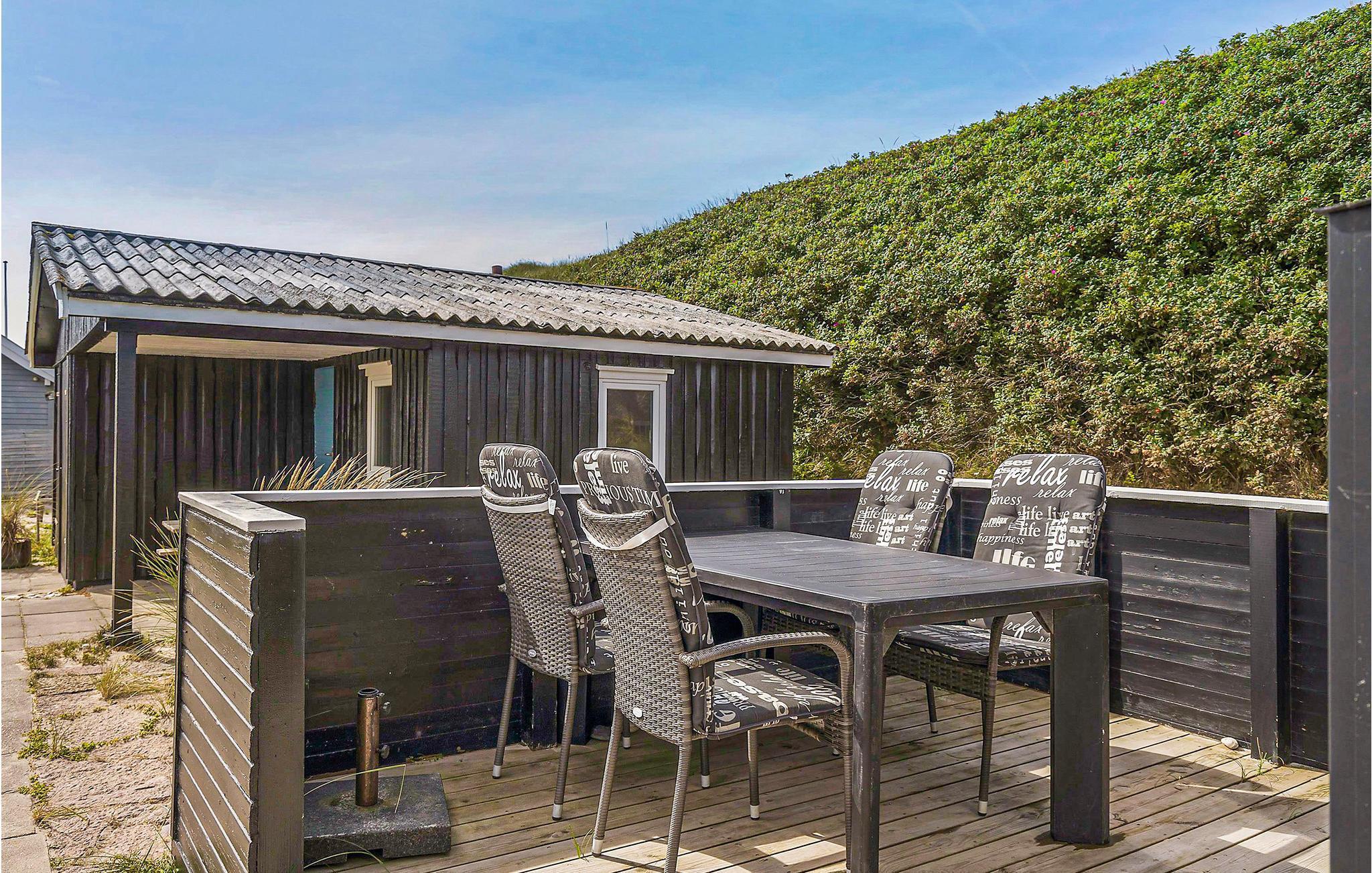 Dette utroligt charmerende og hyggeligt indrettede sommerhus ligger med Vesterhavet i baghaven. Huset er godt indrettet til den lille familie, der elsker naturen og gerne vil bo midt i de naturskønne omgivelser. I selve hovedhuset findes et soveværelse, et badeværelse med bruser samt et lyst og indbydende køkken i åben forbindelse med stuen og spiseområdet. Der er tyske tv-kanaler via parabol samt Chromecast til rådighed. Til huset hører desuden et annex med yderligere et soveværelse og et badeværelse med bruser. Her er flere gode, små lækroge og en dejlig terrasse. Lige bagved huset er klitterne og Vesterhavet.