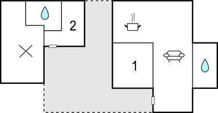 Badeværelse 2m2 (nr. 1) - WC. Varmt og koldt vand. Bruser