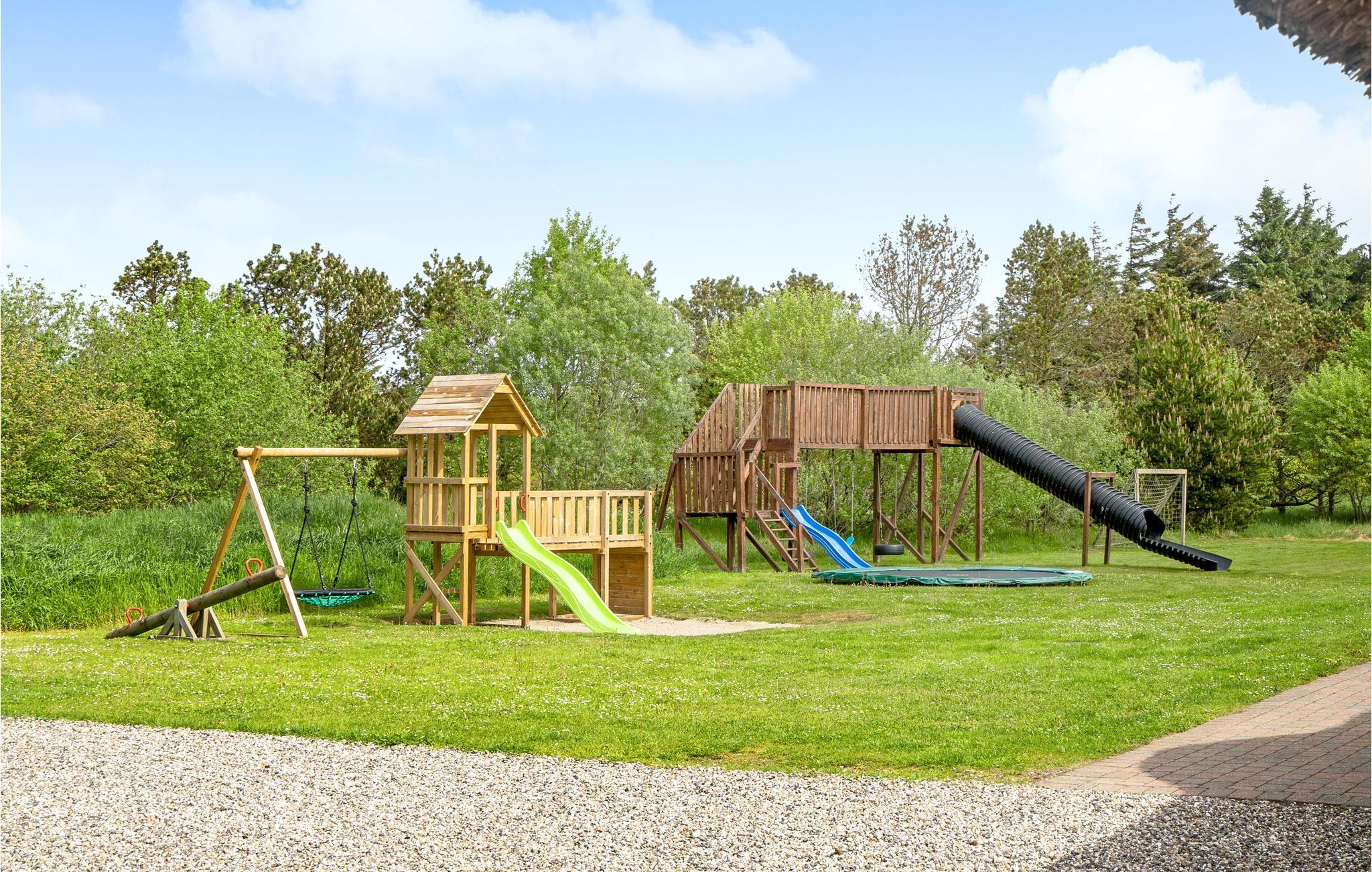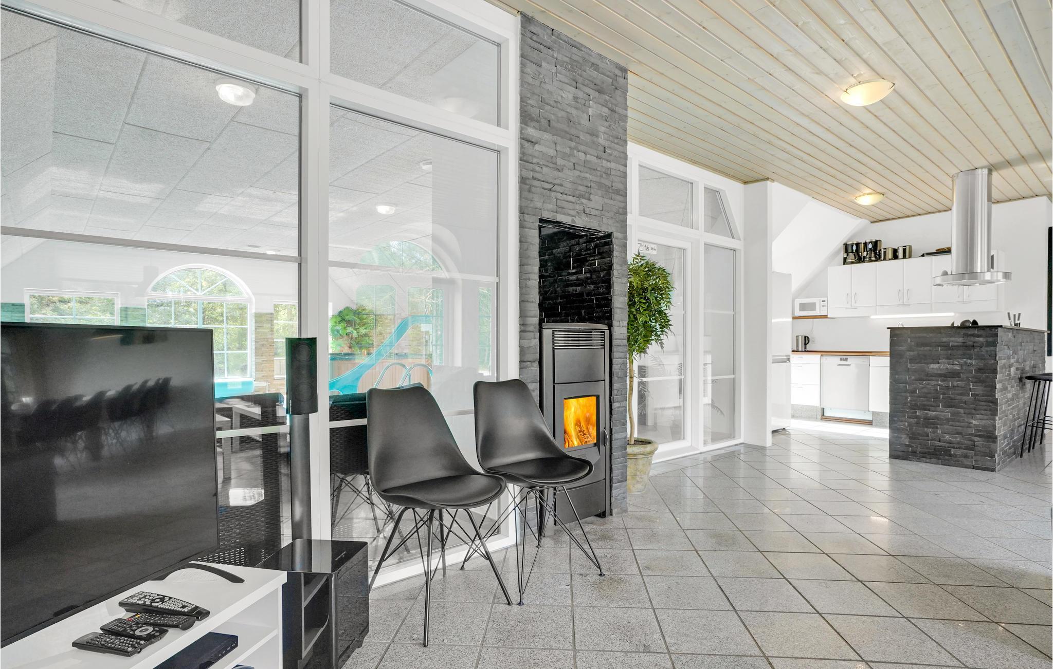 Velkommen til dette moderne og lyse feriehus. Her kan I tilbringe en dejlig tid med familie eller venner. De fantastiske faciliteter som swimmingpool og jacuzzi sørger for at I kan holde en rigtig luksusferie her. Børn og firbenede familiemedlemmer kan boltre sig i haven og slå sig løs på legeredskaberne. Imens kan de voksne slappe af på terrassen med en kølig drink og nyde solens stråler. I kan også bruge husets sauna til at slappe af efter begivenhedsrige dage.