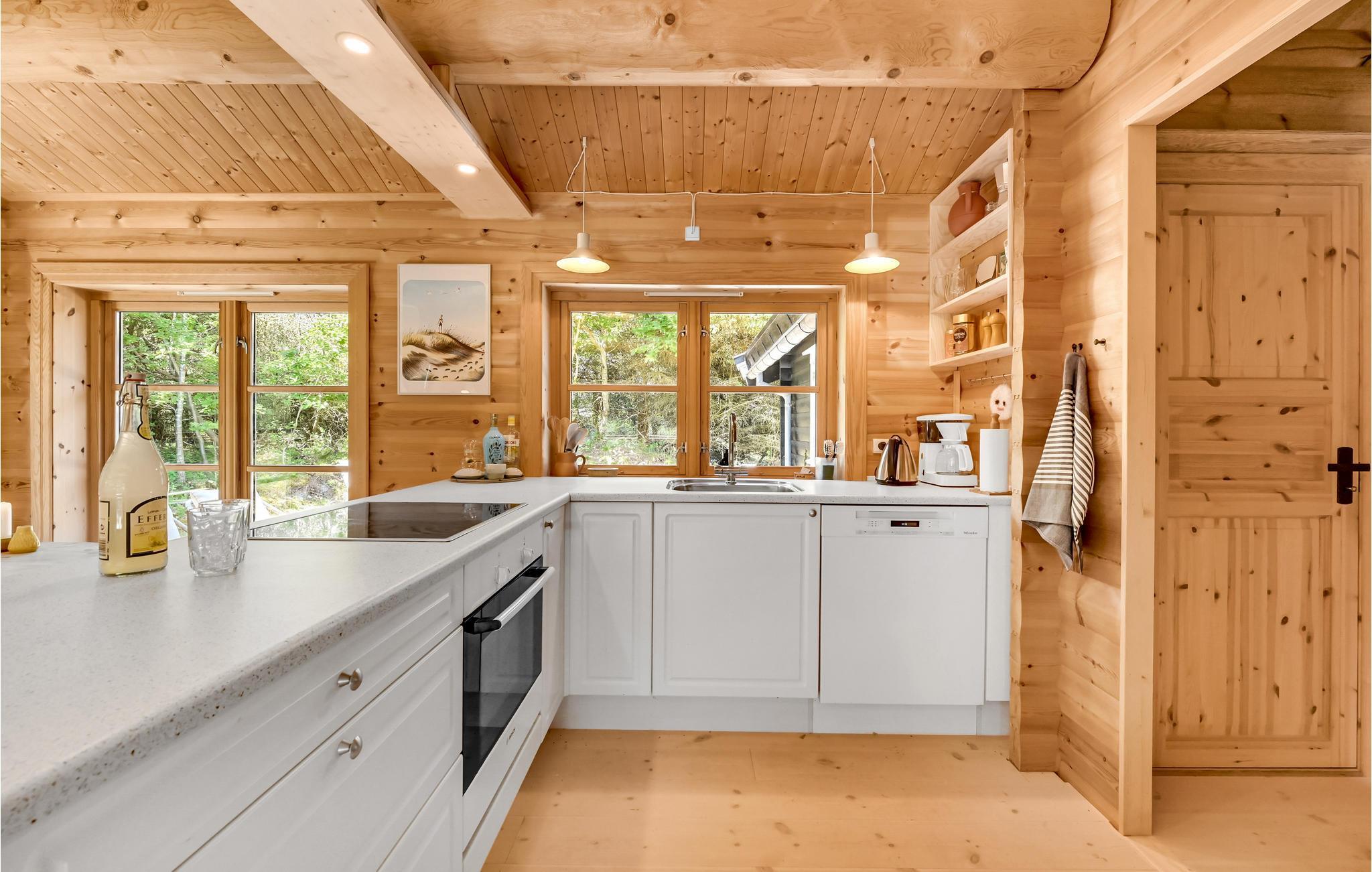 Glæd jer til en skøn ferie på den jyske vestkyst med venner, familie og hund. Huset tager sig ud som en lækker træhytte med et gedigent, skandinavisk udtryk. Her kan I tilbringe dejlige timer med familien. Brændeovnen sørger for hyggelig varme på kølige dage, og når solen er fremme, kan I nyde vejret på terrassen og slippe børnene løs i haven.