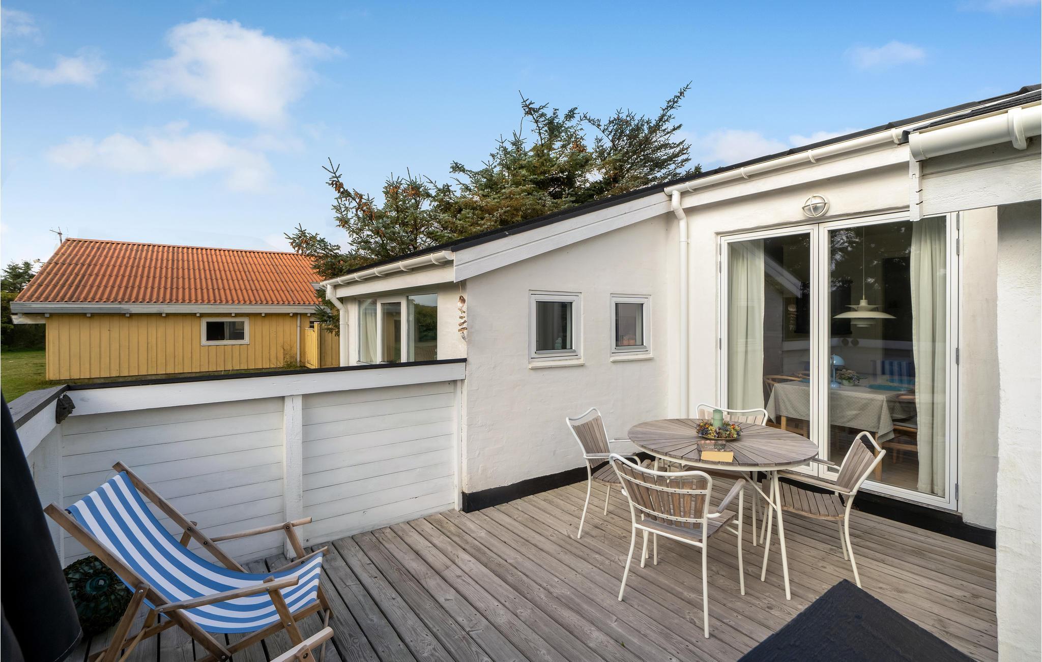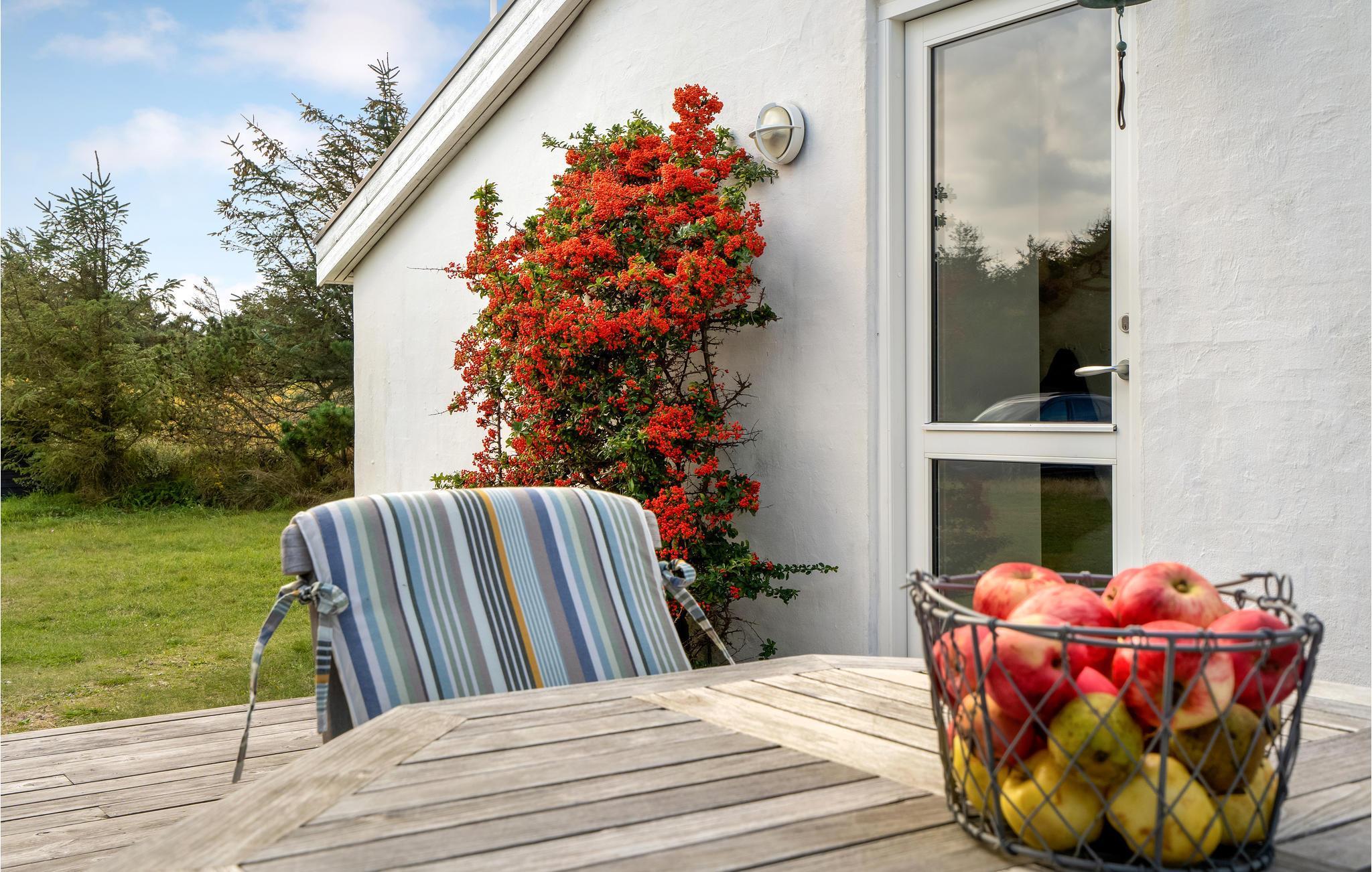 I den lille badeby Fjand, mellem Nissum Fjord og Vesterhavet ligger dette charmerende feriehus, som er indrettet i moderne skandinavisk stil. Feriestemningen indfinder sig hurtigt, for huset er lyst og lækkert indrettet med møbler i flet og træ samt den havblå farve som gennemgående tema. Anneksbygningen giver jer ekstra sengepladser og god mulighed for at fordele jer.