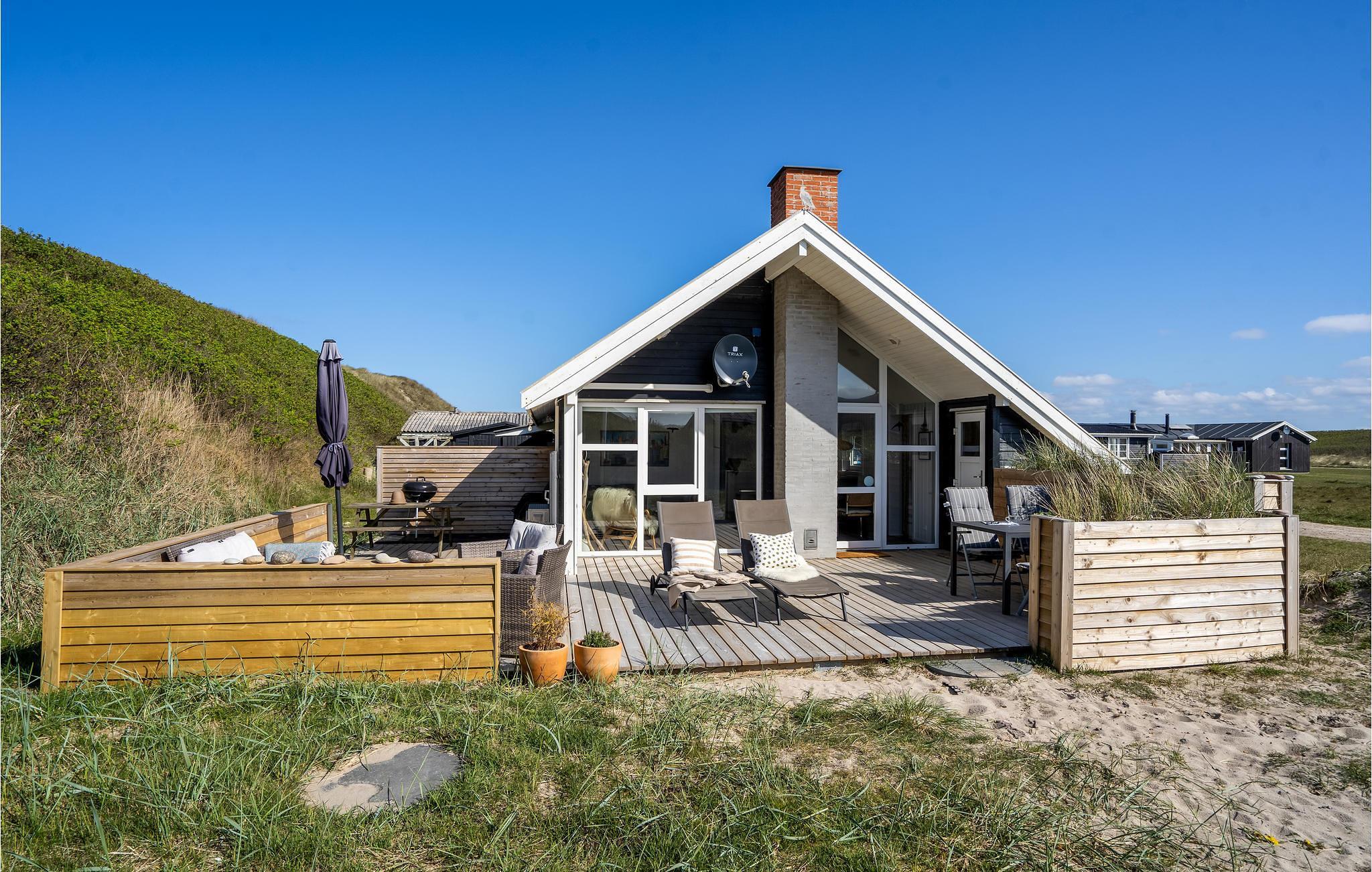 Her bor I midt i vestkystens smukke klitlandskab, der ligger som en beskyttende dyne om huset, der er renoveret i 2020 og er ideelt til en hyggelig familieferie. Her er tre soveværelser. Opholdsstuen er et naturligt samlingssted hvor I kan samles om brætspil, med ild i brændeovnen, eller bare nyde den smukke udsigt gennem de store vinduespartier.