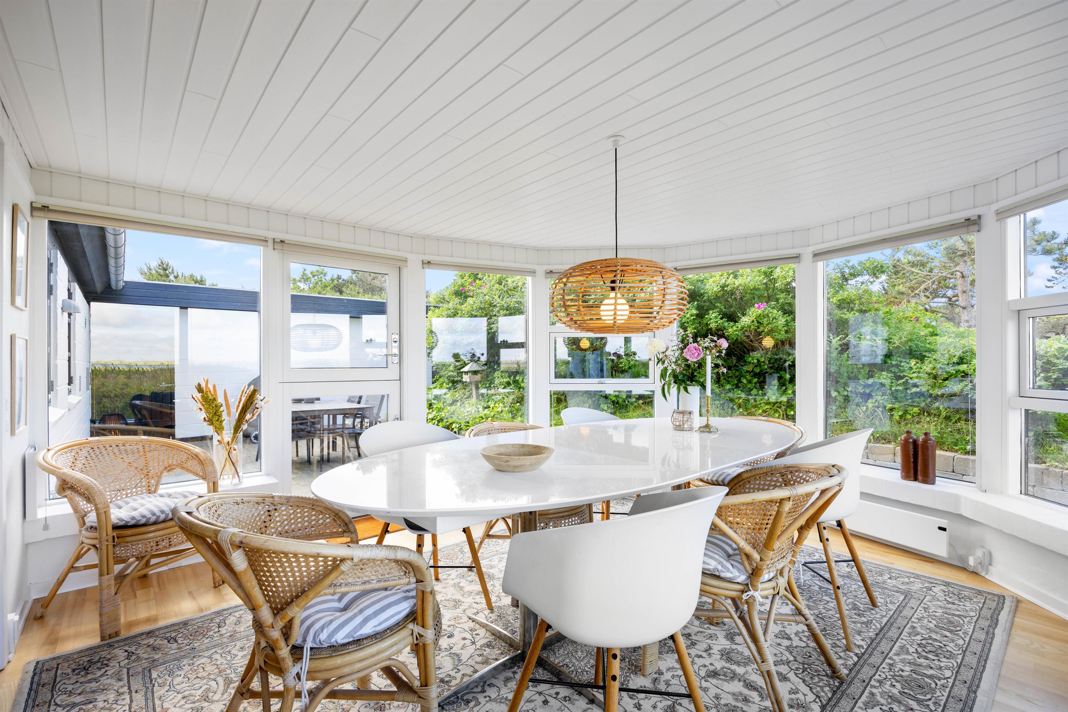 De resterende 2 soveværelser finder I på sommerhusets førstesal. Det ene af disse soveværelser er indrettet med en dobbeltseng, og det andet er indrettet med 1 enkeltseng. På førstesalen har I desuden en hyggelig tv-stue, hvorfra der også er en fantastisk udsigt over Nissum Fjord. Derudover er der også et gæstetoilet på førstesalen.