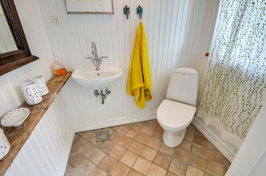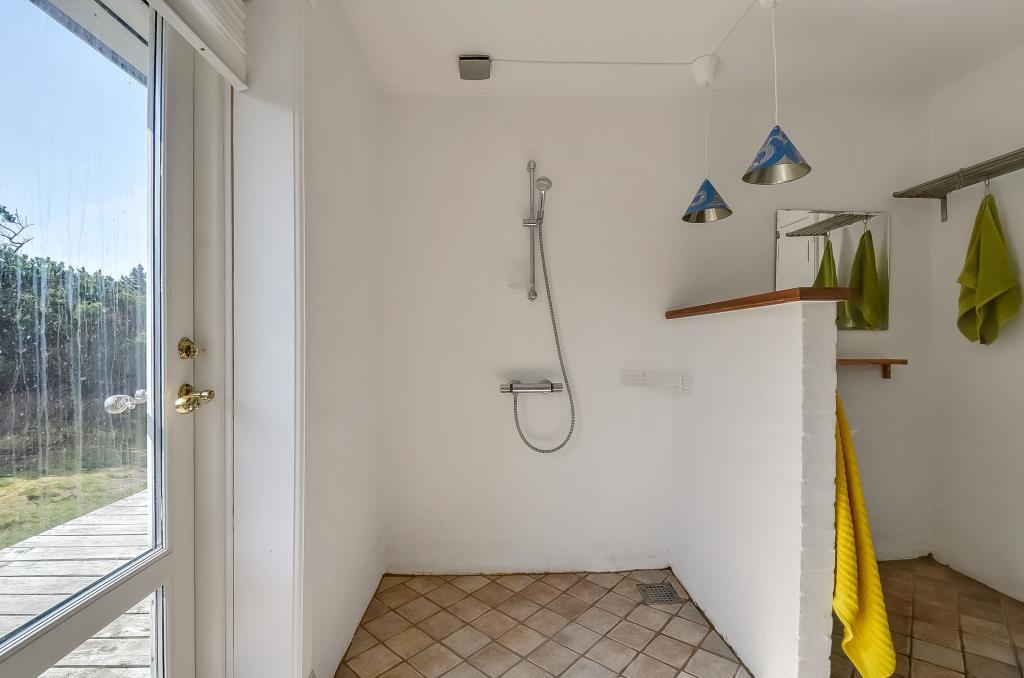 Badeværelset er rummeligt og har hele to brusere, og derudover findes et praktisk gæstetoilet.