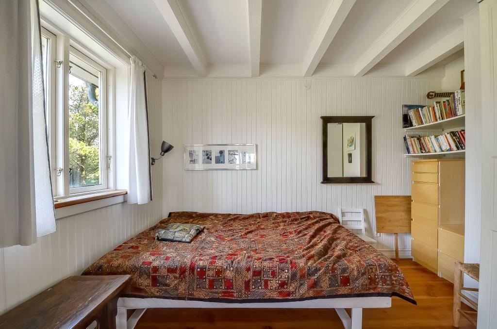 Herfra er der adgang til soveværelset med dobbeltseng, mens en gang forbinder resten af huset med de øvrige rum.