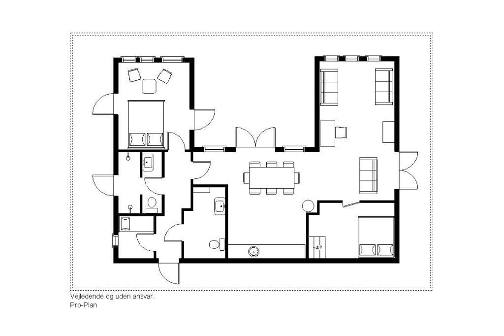 Feriehuset er på 100 m² og indrettet i en spændende stil med et åbent og hyggeligt opholdsrum, hvor køkken, spiseplads og stue smelter sammen til ét.