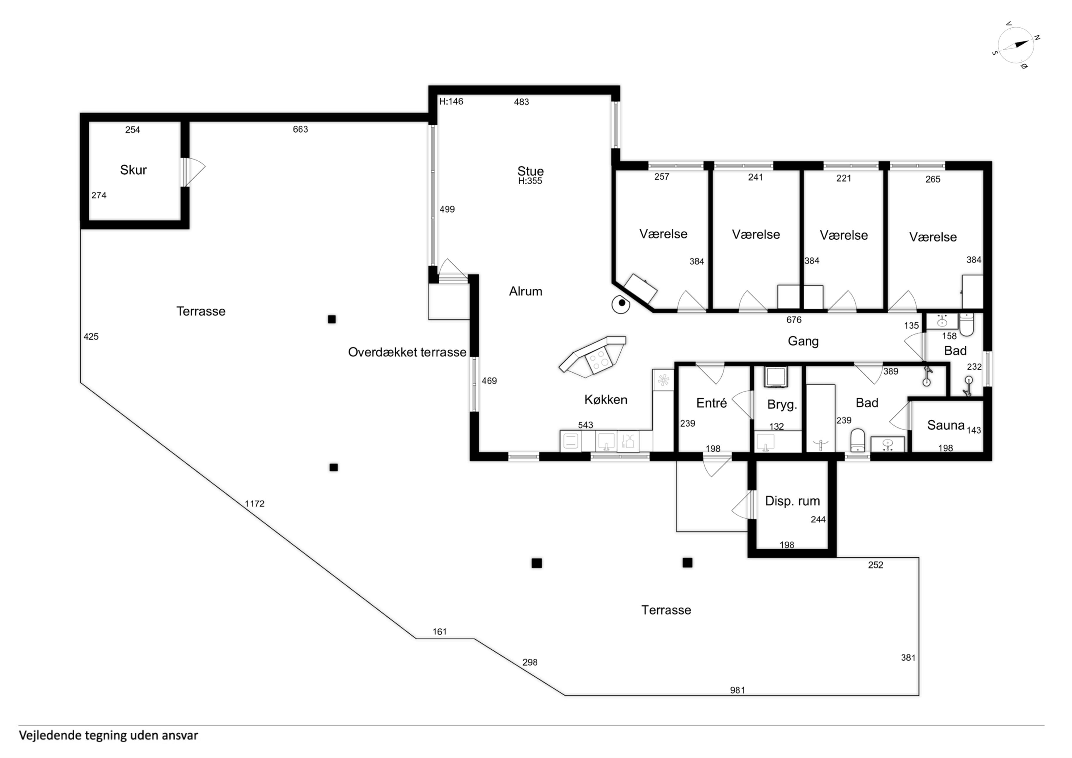 Fra stuen er der direkte adgang til en stor, overdækket terrasse – ideel til hyggelige grillaftener og lange sommeraftener udendørs, uanset vejret. Derudover findes et praktisk depotrum til opbevaring af bagage eller udstyr.
