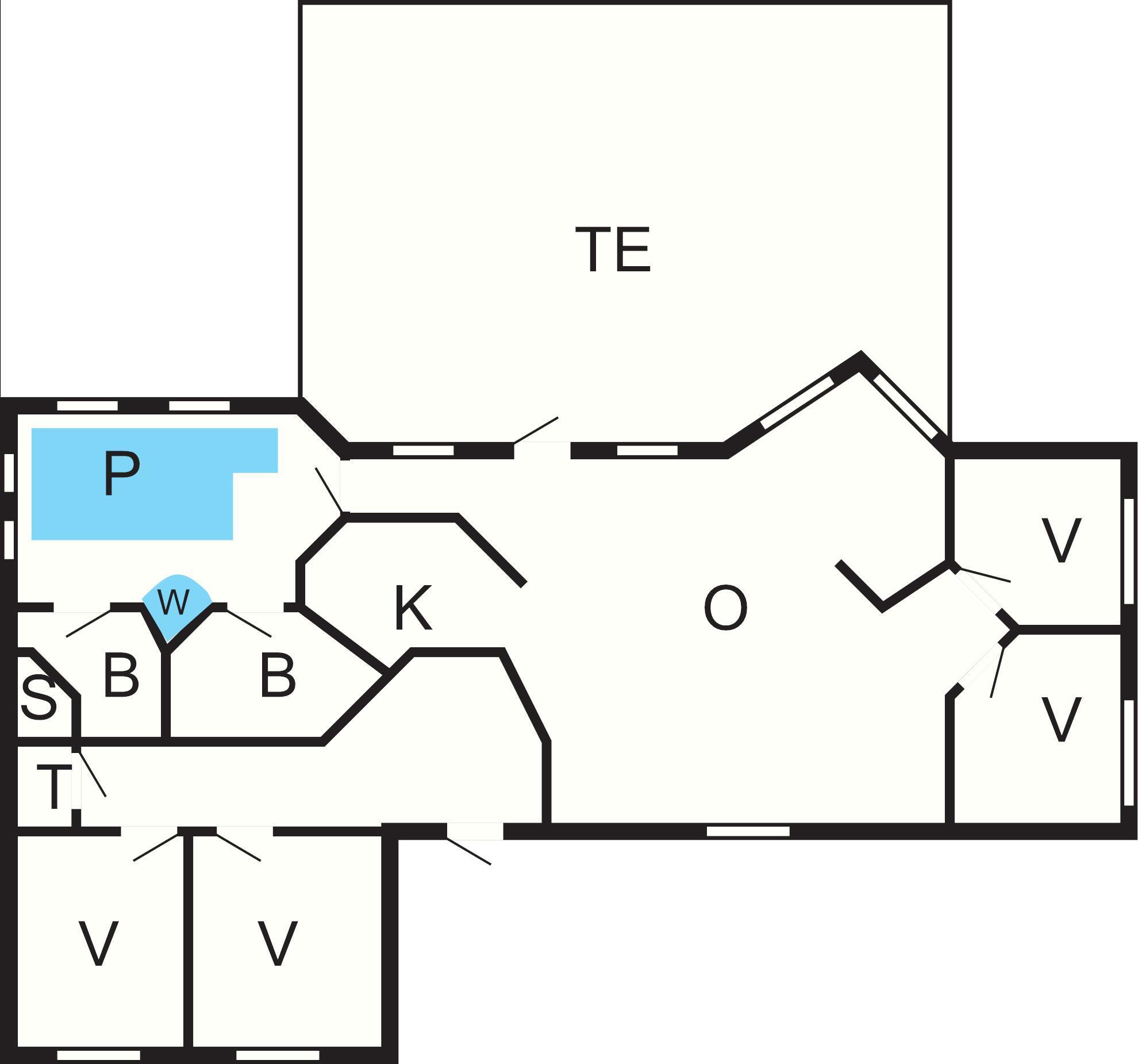 Husets poolafdeling indeholder swimmingpool (4,8 x 3,1 x 1,3 m) med børnepool, 2-personers spabad og et stort badeværelse med bruseniche og gulvvarme. Fra badeværelset er der adgang til saunaen. Endvidere indeholder huset endnu et badeværelse ligeledes med gulvvarme og bruseniche.
