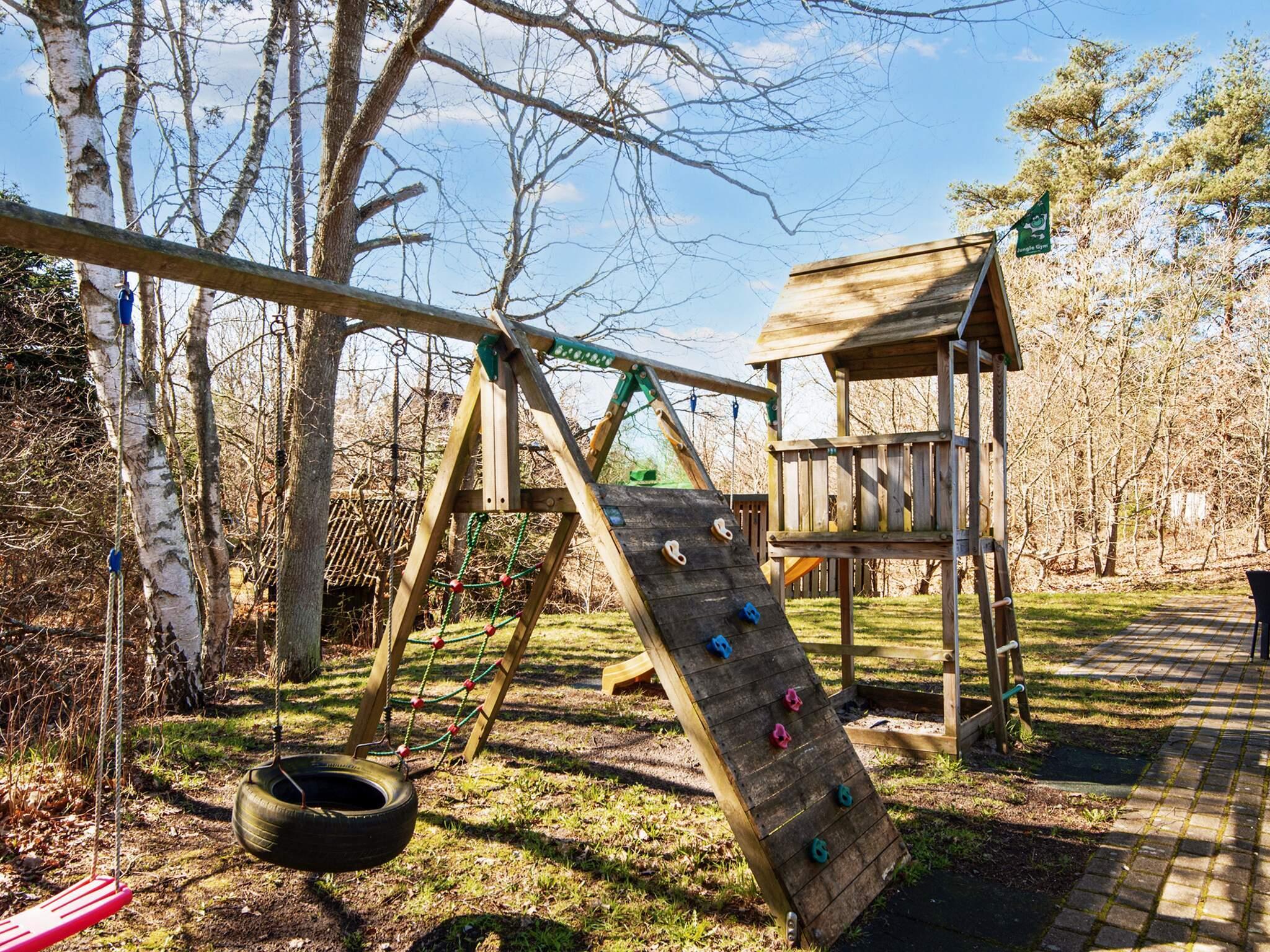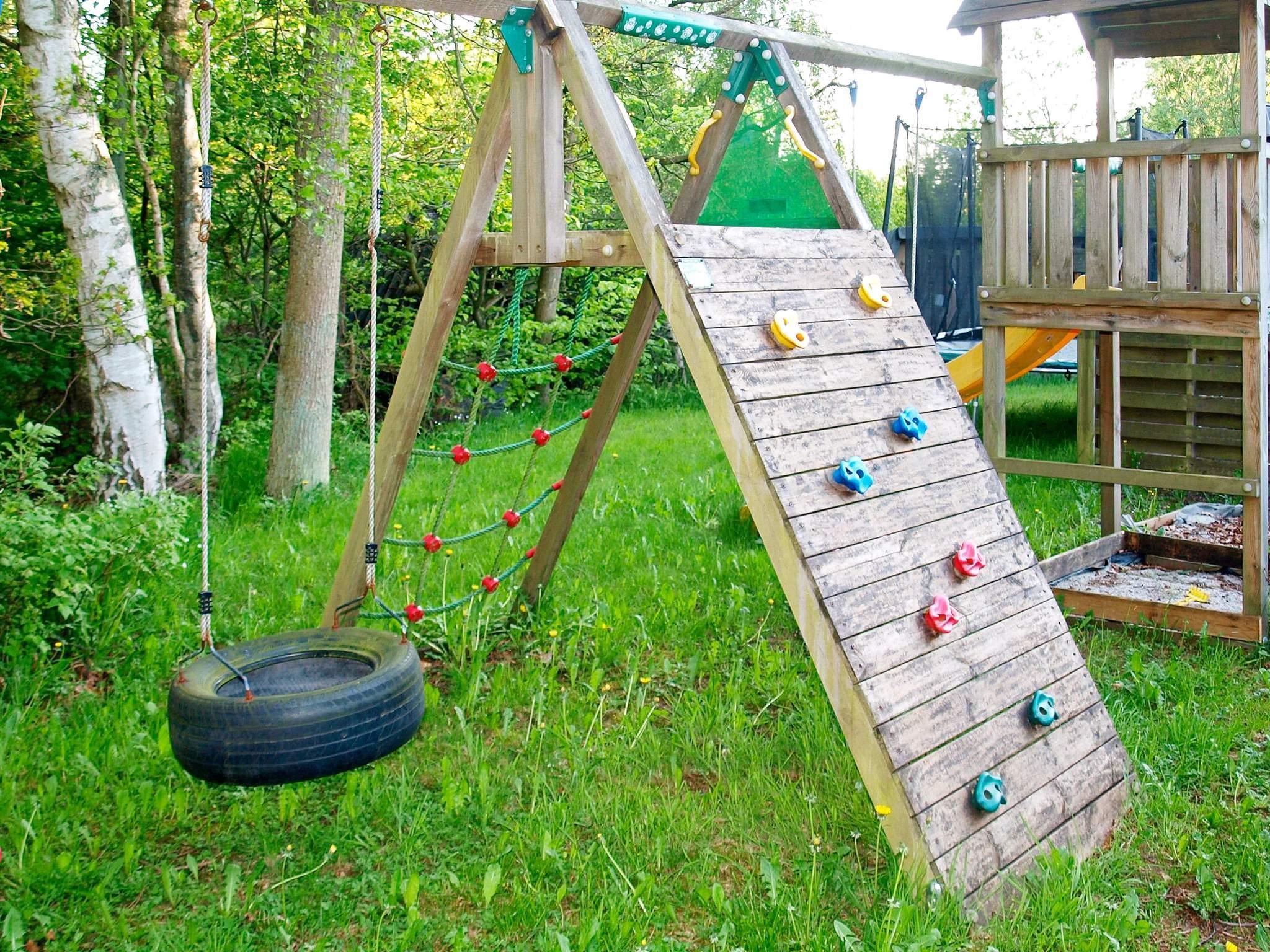 Der er sandkasse og gynge på grunden. Huset ligger på en naturgrund i ugenerte omgivelser.