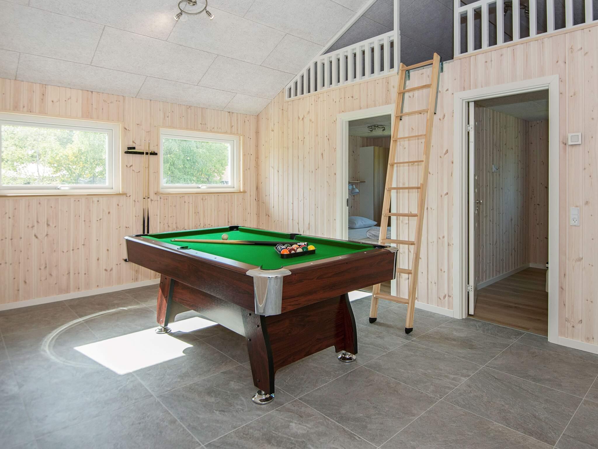 Sommerhuset er indrettet i de bedste materialer og indeholder mange spændende detaljer. I aktivitetsrummet finder I bl.a. bordfodbold.