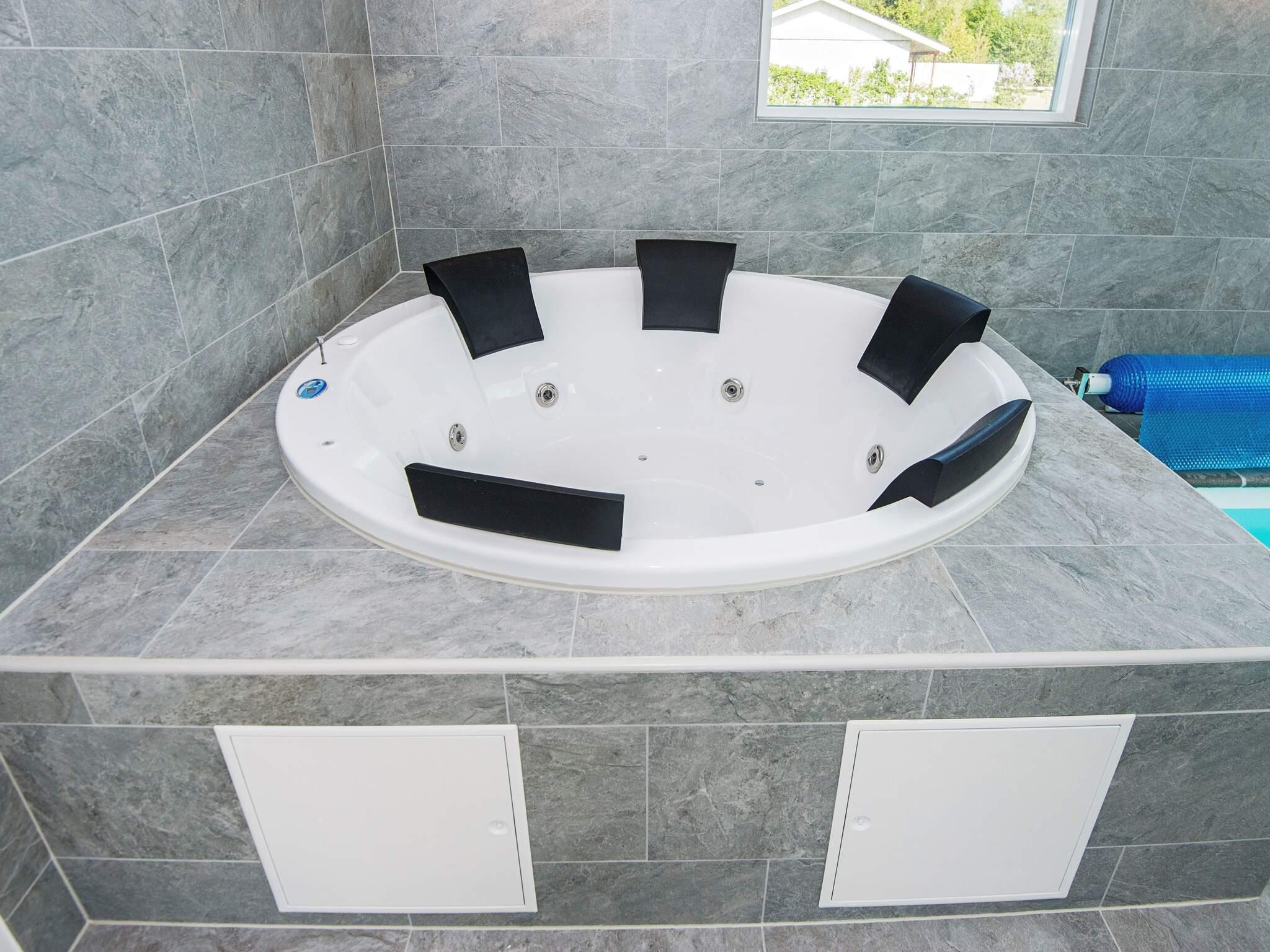 I sommerhusets spa- og poolafdeling kan I boltre jer med bl.a. svømmetræner eller en tur i rutsjebanen eller I kan slappe af i husets sauna.