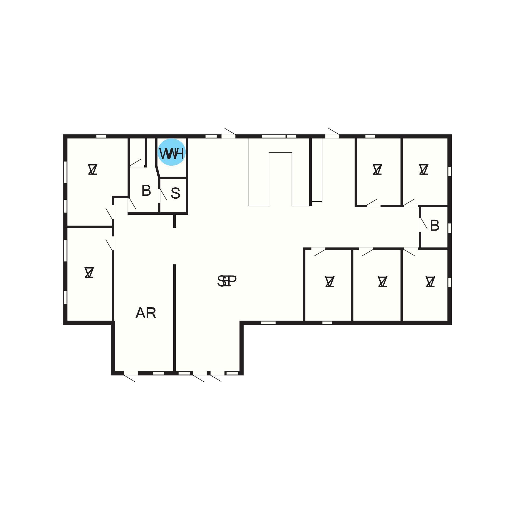 7 Soveværelser: (1DS)+(1DS)+(1DS)+(1DS)+(1DS)+(1DS)+(4K)