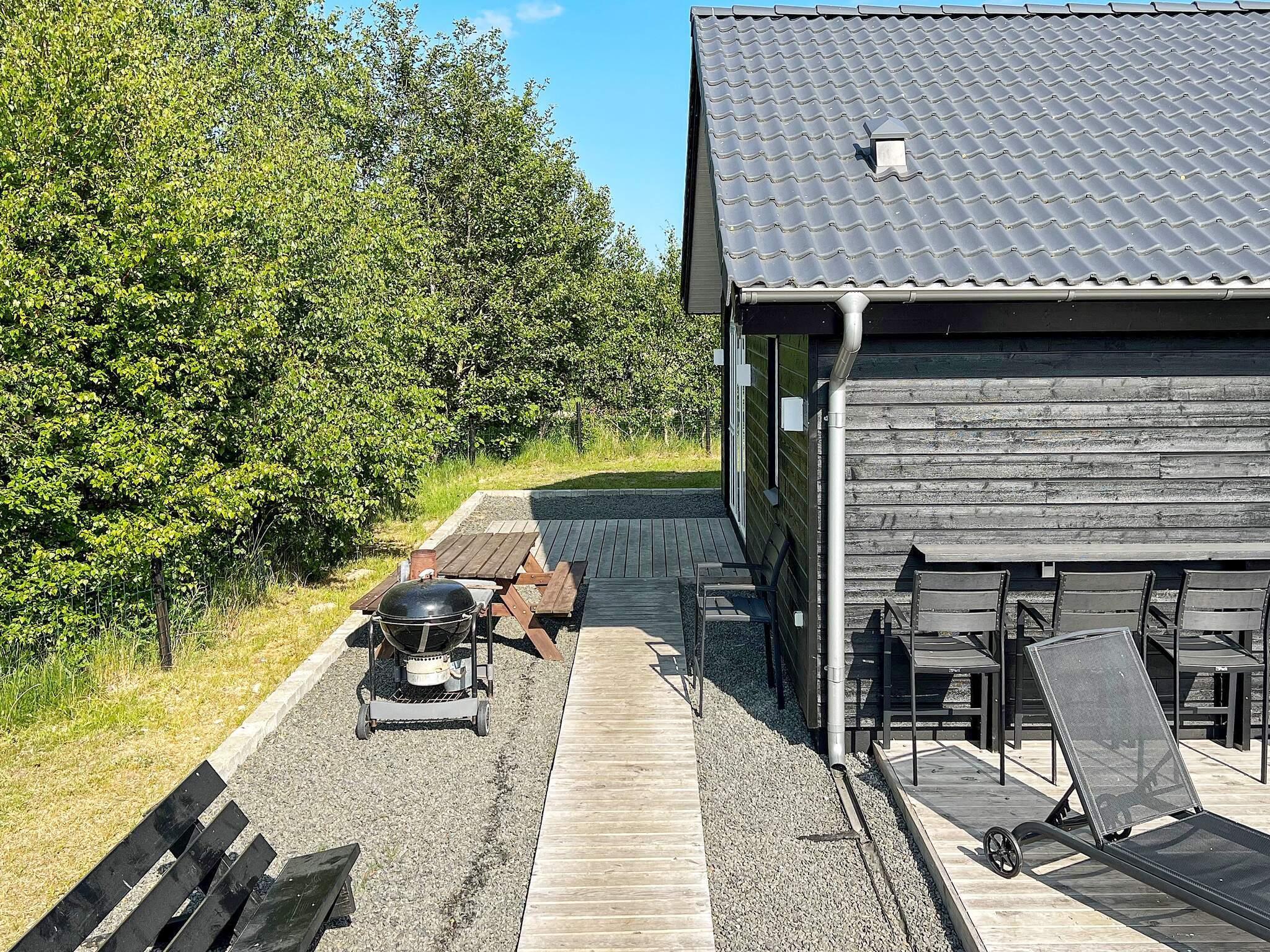 Utrolig velindrettet sommerhus på 180 m2 som indeholder 5 soverum samt en kombineret stue og køkken på 52m2, 2 badeværelser samt et aktivitetsrum på 20 m2. Aktivitetsrummet er indrettet med billard, airhockey og dart. Huset rummer mange fine detaljer b.la. går stue op i kip, og der er altid godt lysindfald i kraft af de store vinduespartier. Huset er indrettet med vaskemaskine og tørretumbler samt godt internet samt tv med 25 danske, norske, svenske og tyske kanaler. Ejeren har gjort meget ud af, at der skal være en moderne stil i huset. Huset har desuden et indendørs spa med plads til 2 personer. Der er 2 højstole til de mindste. Udendørs er der til børnene en nedgravet trampolin(benyttes på eget ansvar/egen forsikring), gyngestativ, fodboldmål og legeborg med rutsjebane. Derudover findes der 2 vildmarksbade, hvor der er mulighed for at sidde og nyde udsigten over søen. Der er desuden 80 m2 terrasse, så der er god mulighed for at finde en plads i solen. Udlejes ikke til ungdomsgrupper.