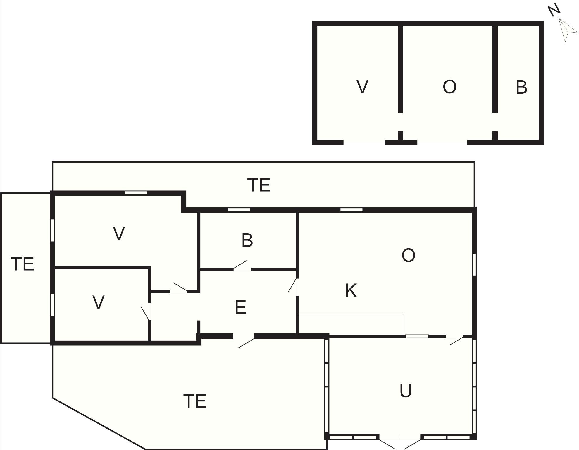 2 Soveværelser: (1DS)+(2S)