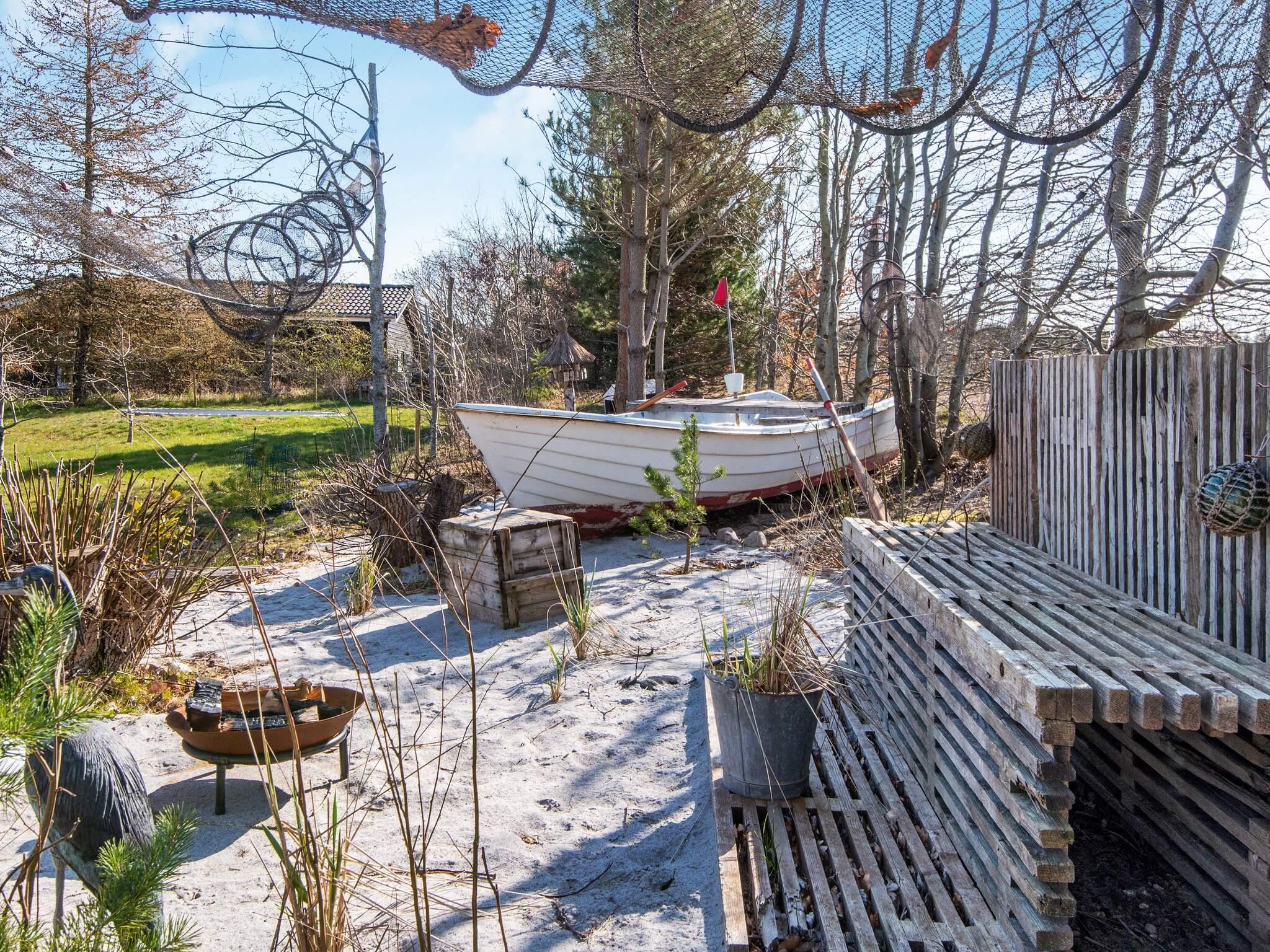 Grunden er beliggende i den rolige feriehusområde Fløden, for enden af en stille vej, og tilbyder dermed privatliv og ro. Den store, landskabeligt anlagte have (1200 m²) er ideel til børn at lege i og inkluderer en sandkasse. Udendørs kan du nyde grillen eller tage en forfriskende bruser udendørs. Den korte afstand til Fjellerup Strand giver mulighed for at nyde strandaktiviteter eller udforske den naturlige skønhed i området. Omgivelserne indbyder til vandreture, cykling og andre udendørs eventyr.