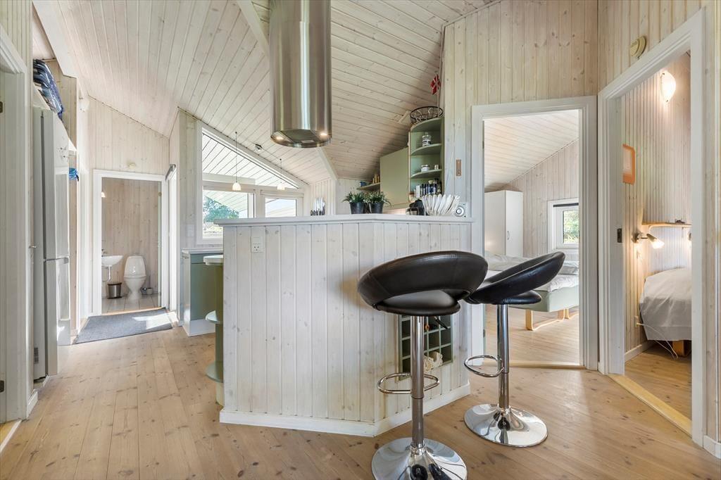 Sommerhus i Fjellerup strand og by, Østjylland, med plads til 8 voksne og 2 husdyr. Der er en hyggelig indretning med bl.a. brændeovn, og du finder desuden vaskemaskine og opvaskemaskine i boligen.