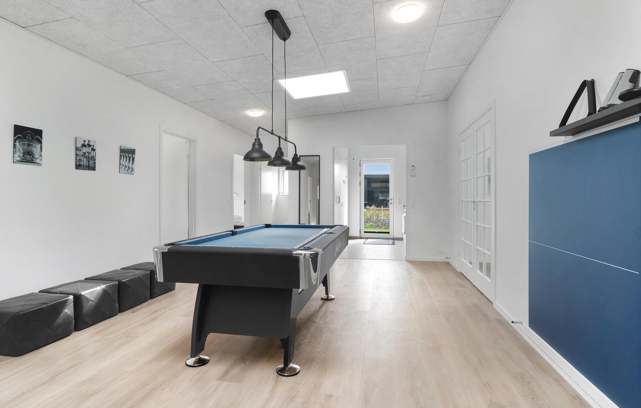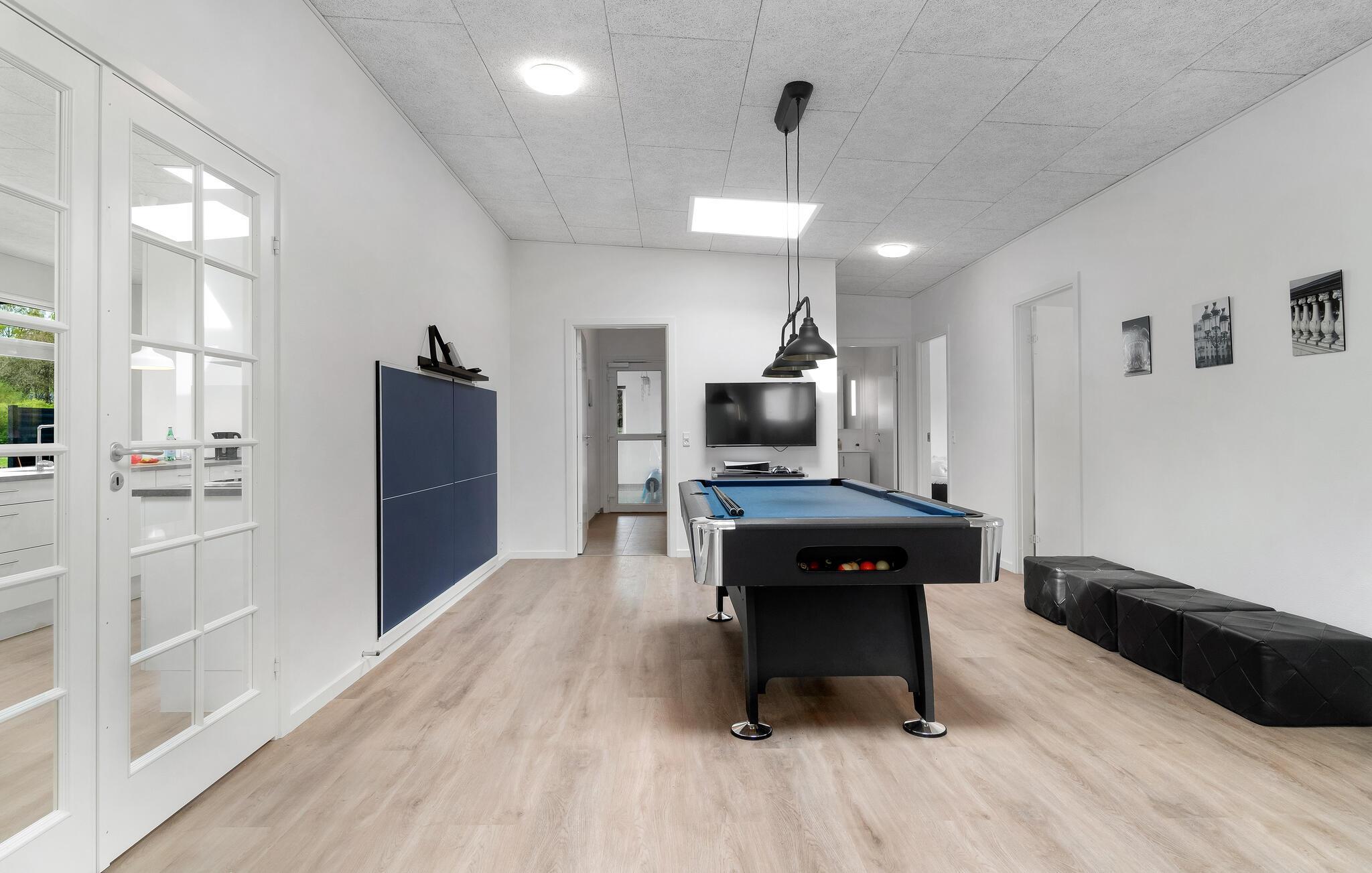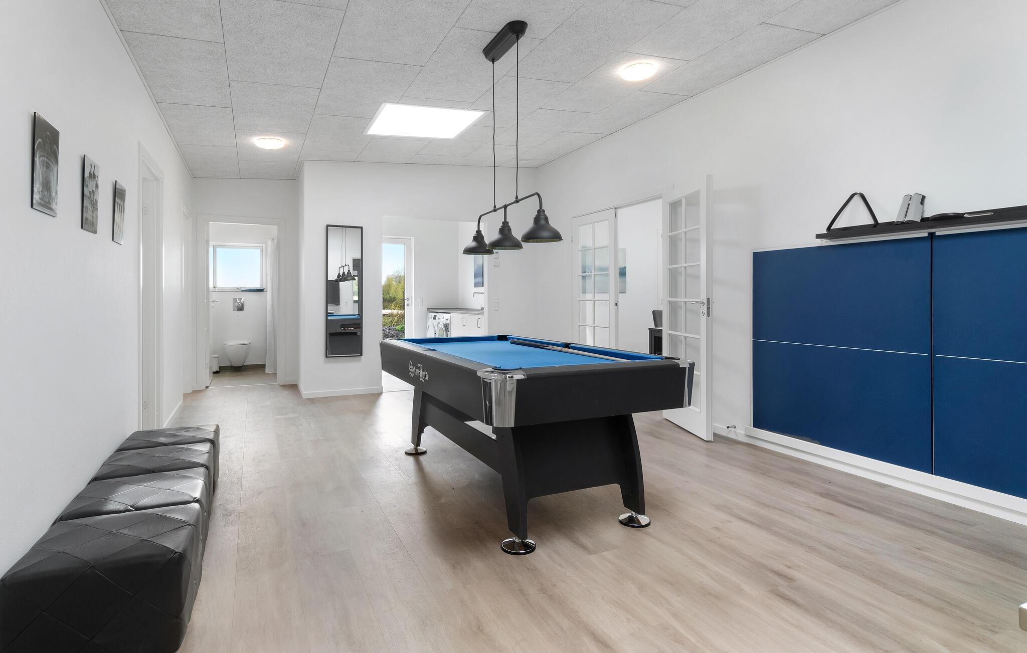 Ved attraktive Fjellerup Strand ligger dette flotte sommerhus, som kan rumme flere familier. I har slår dørene op til et åbent og indbydende hus med lækre, moderne faciliteter. Der er gode rammer til at samles i opholdsområdet, lige som I også kan udfordre hinanden til et spil bordtennis eller billard, hvis I trænger til at bevæge jer. Om aftenen kan I nyde godt af det veludstyrede køkken og dække op til en hyggelig aften rundt om spisebordet.