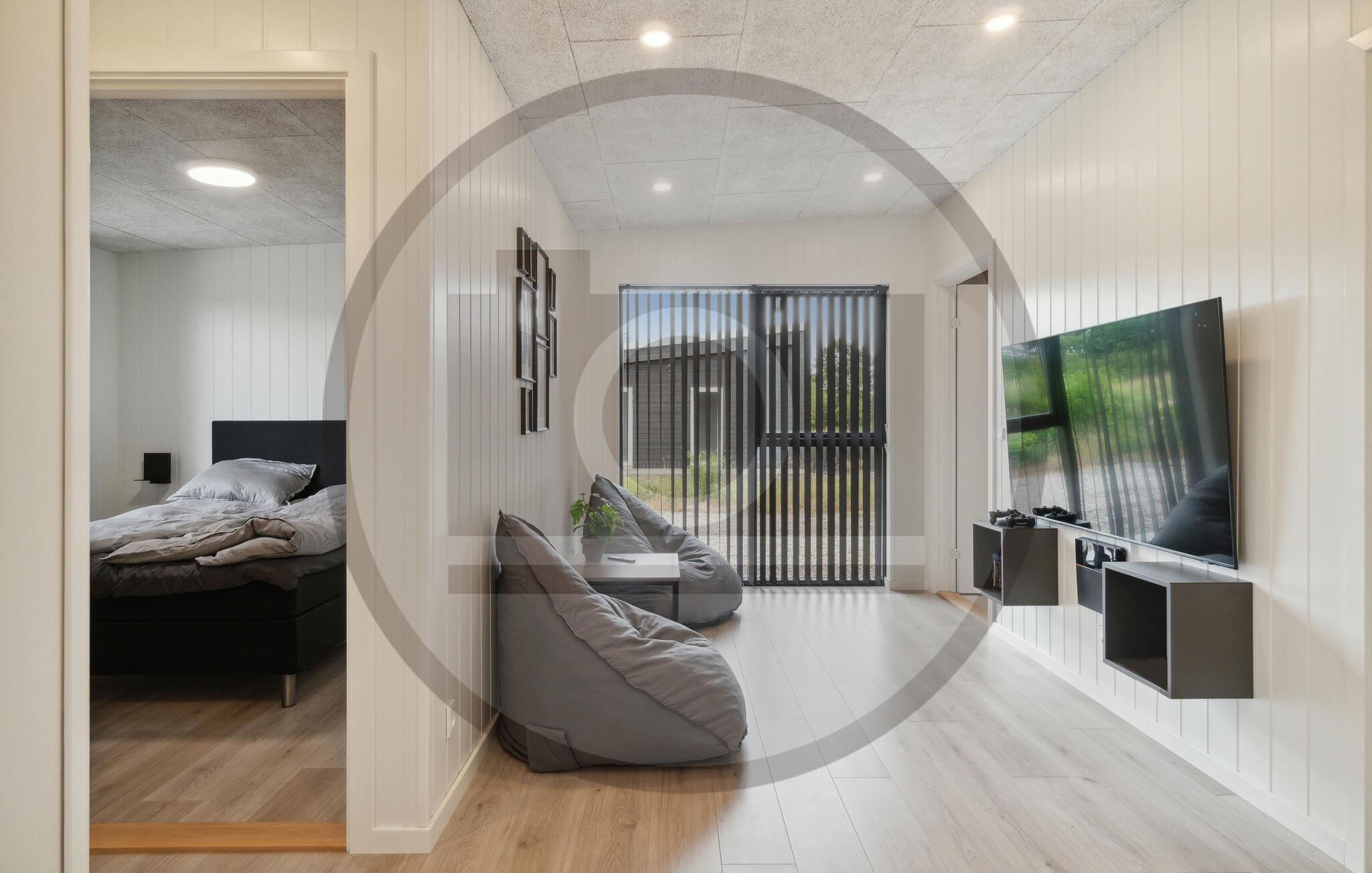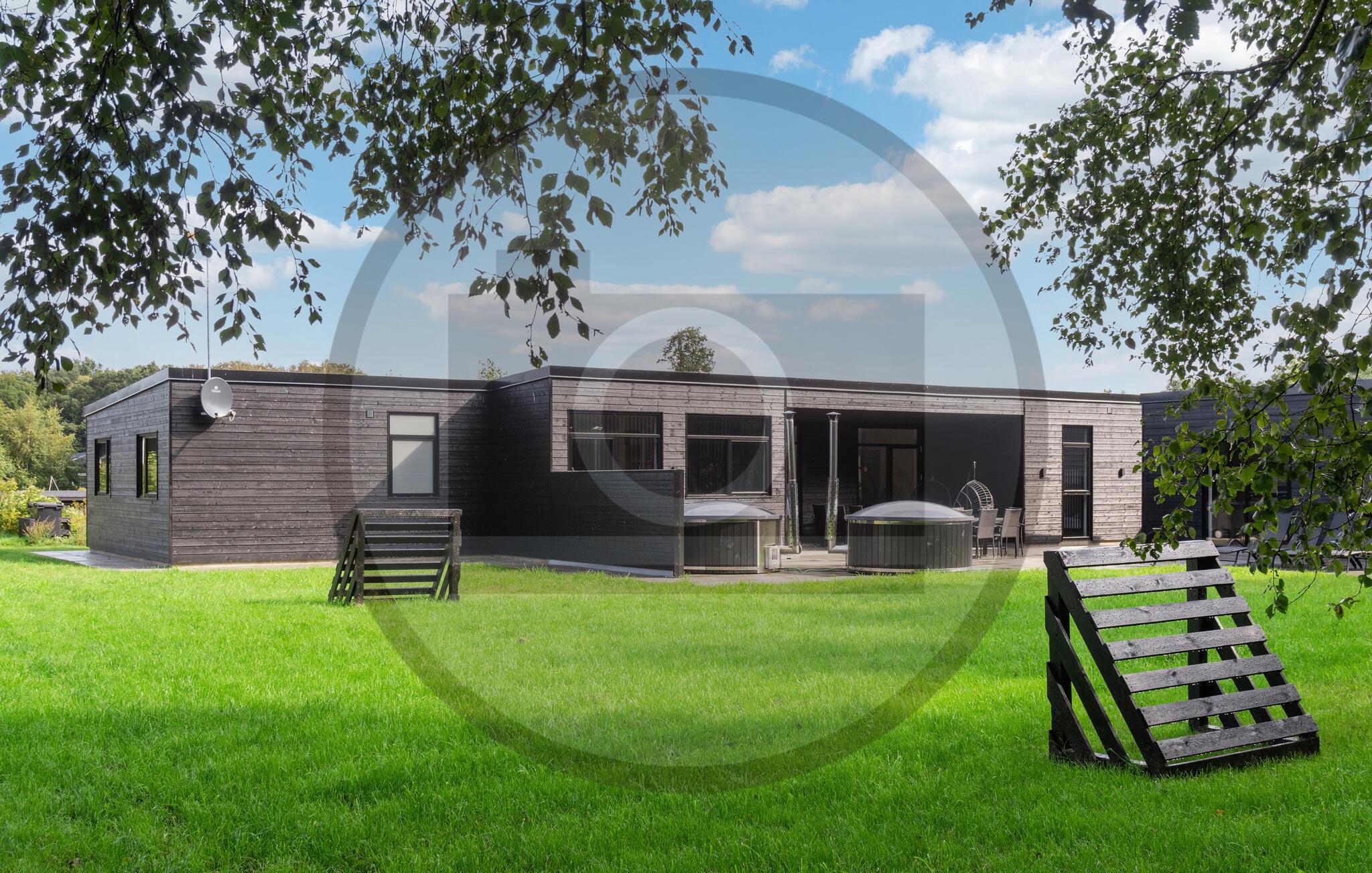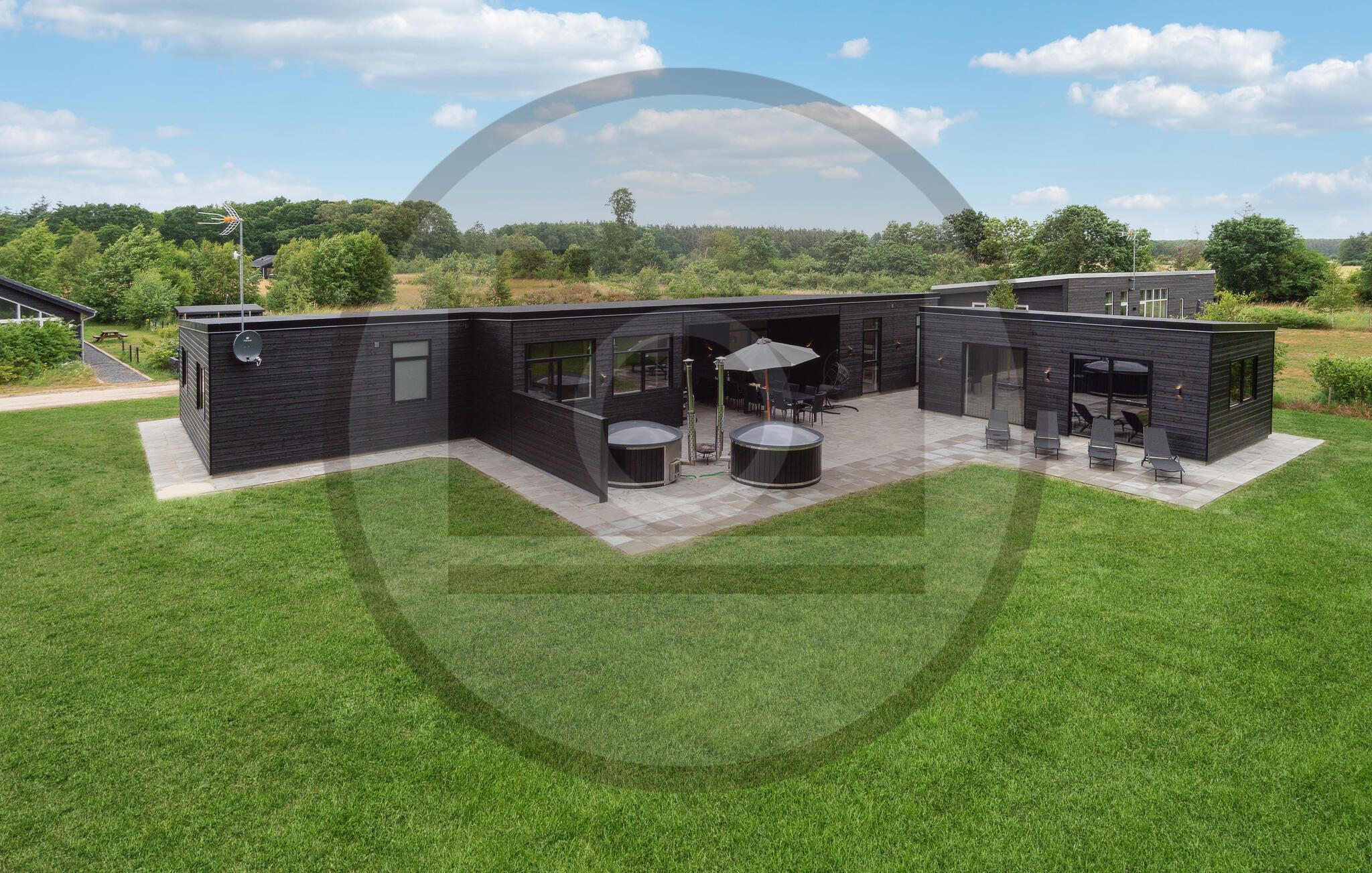 Moderne feriehus i Fjellerup med udendørs wellness, aktivitetsrum og tæt på sandstrand.