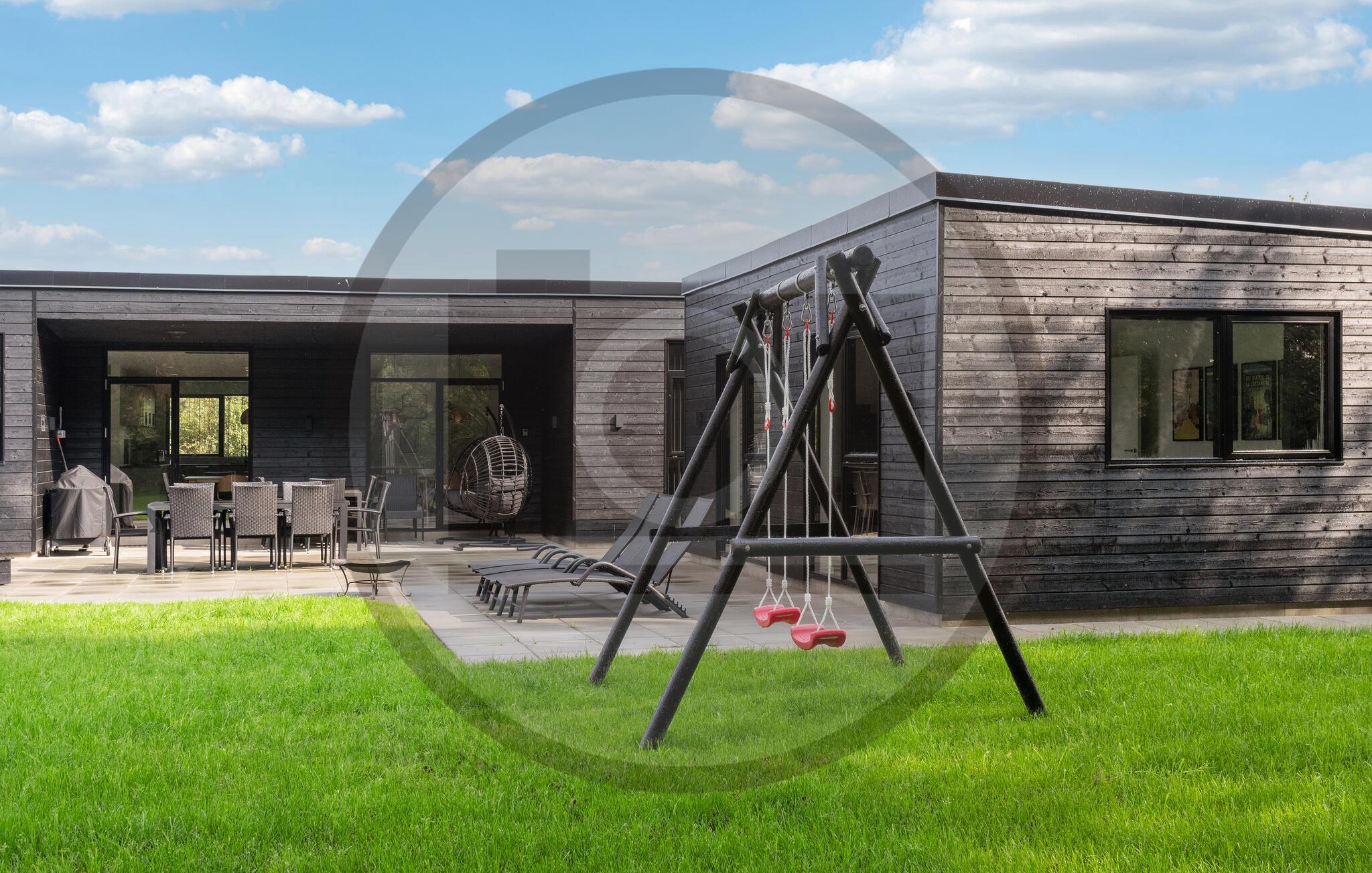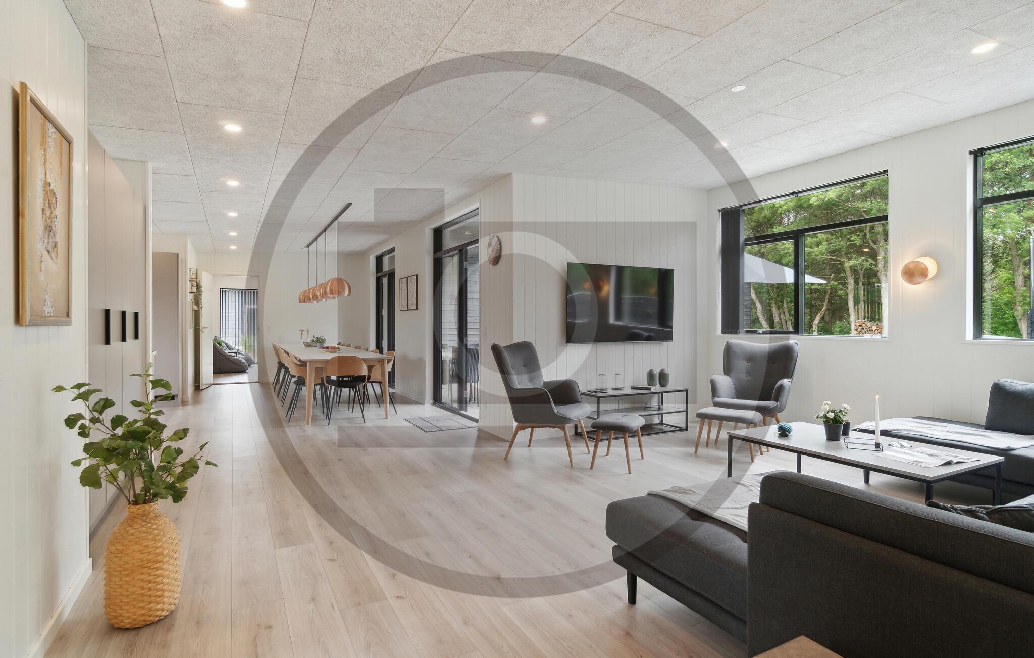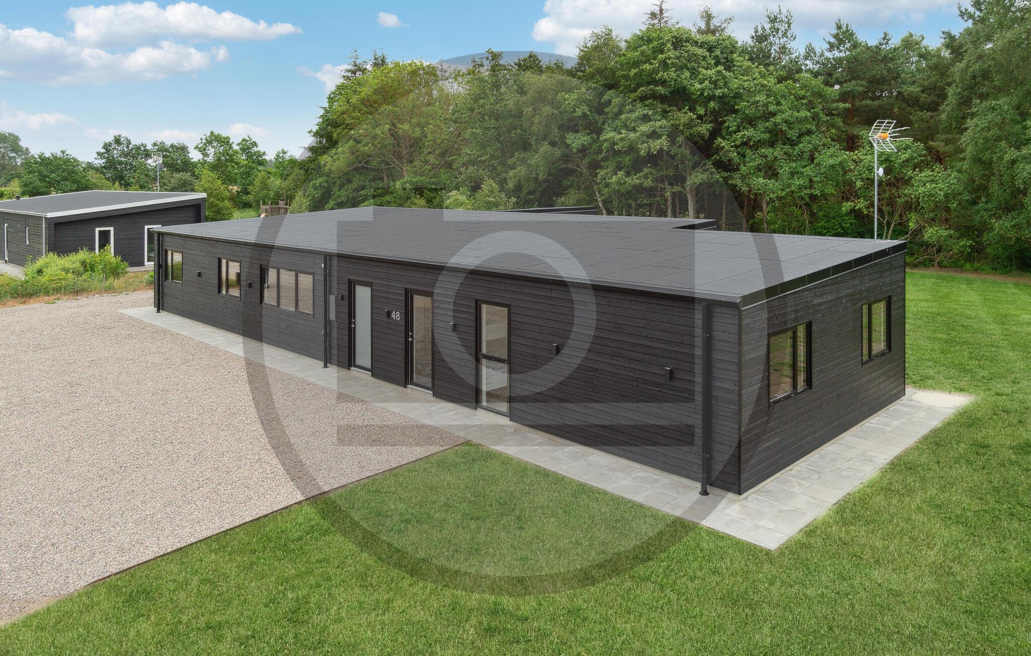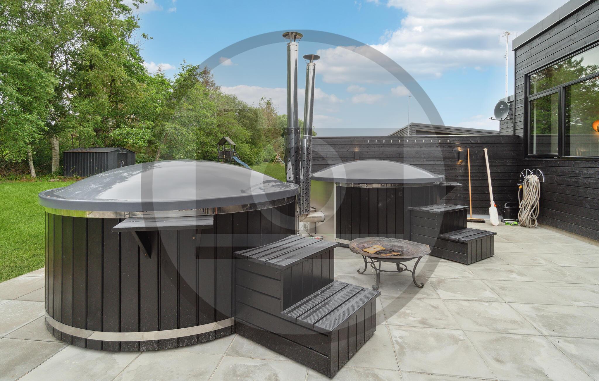 Moderne feriehus i Fjellerup med udendørs wellness, aktivitetsrum og tæt på sandstrand.