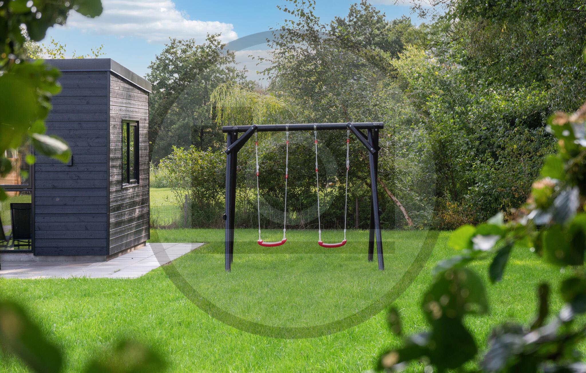 Udenfor venter en rummelig grund med masser af plads til leg, bevægelse og afslapning. Mens børnene gynger eller spiller fodbold, kan I slappe af på terrassen. Her kan I nyde grillmiddage, solbade og trække frisk luft. Når solen langsomt forsvinder bag træerne, forvandles haven til et stille tilflugtssted.