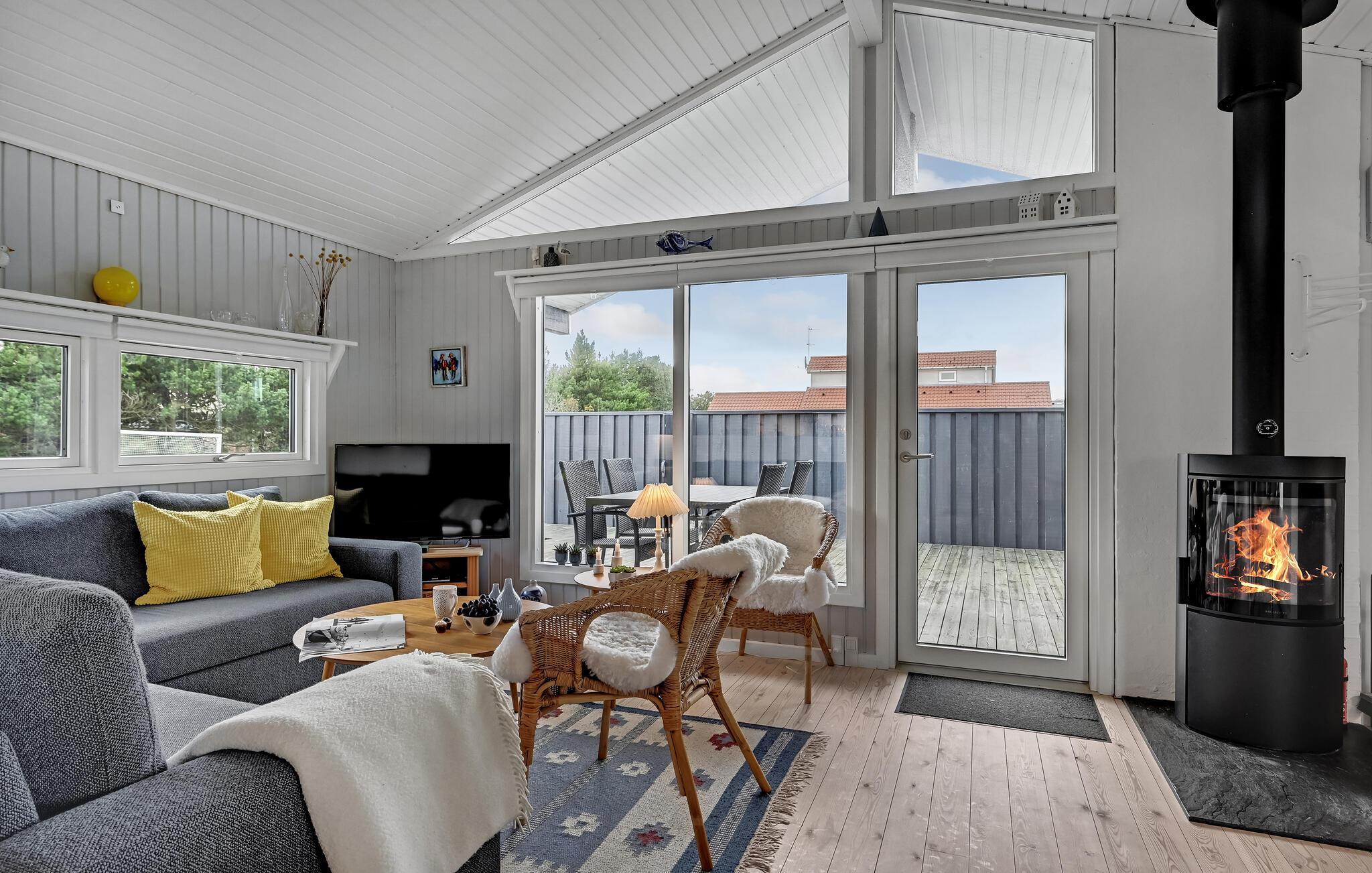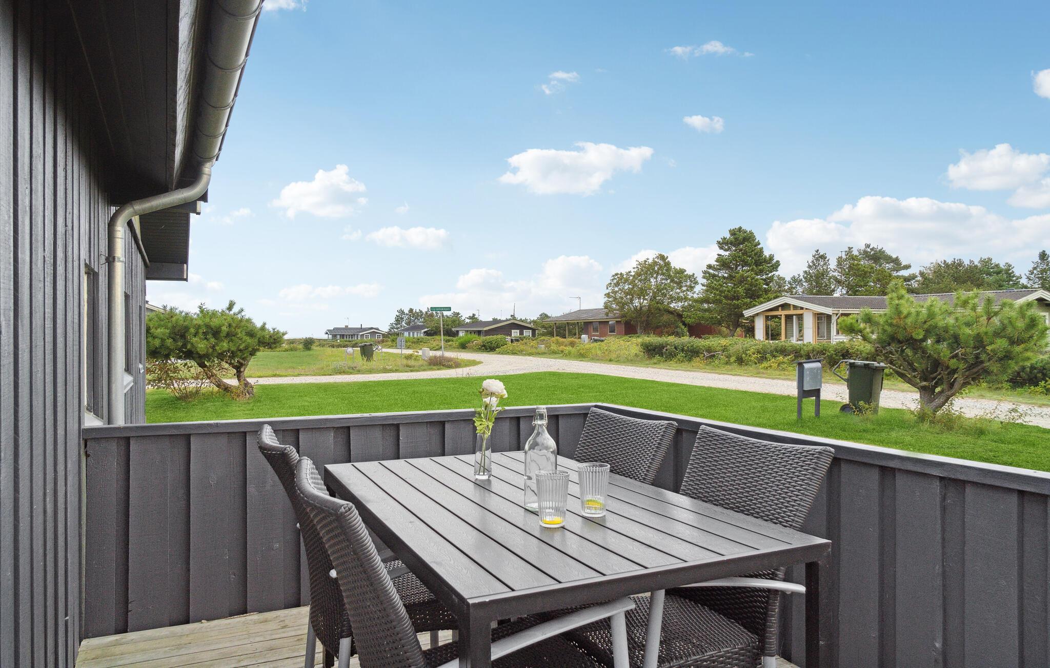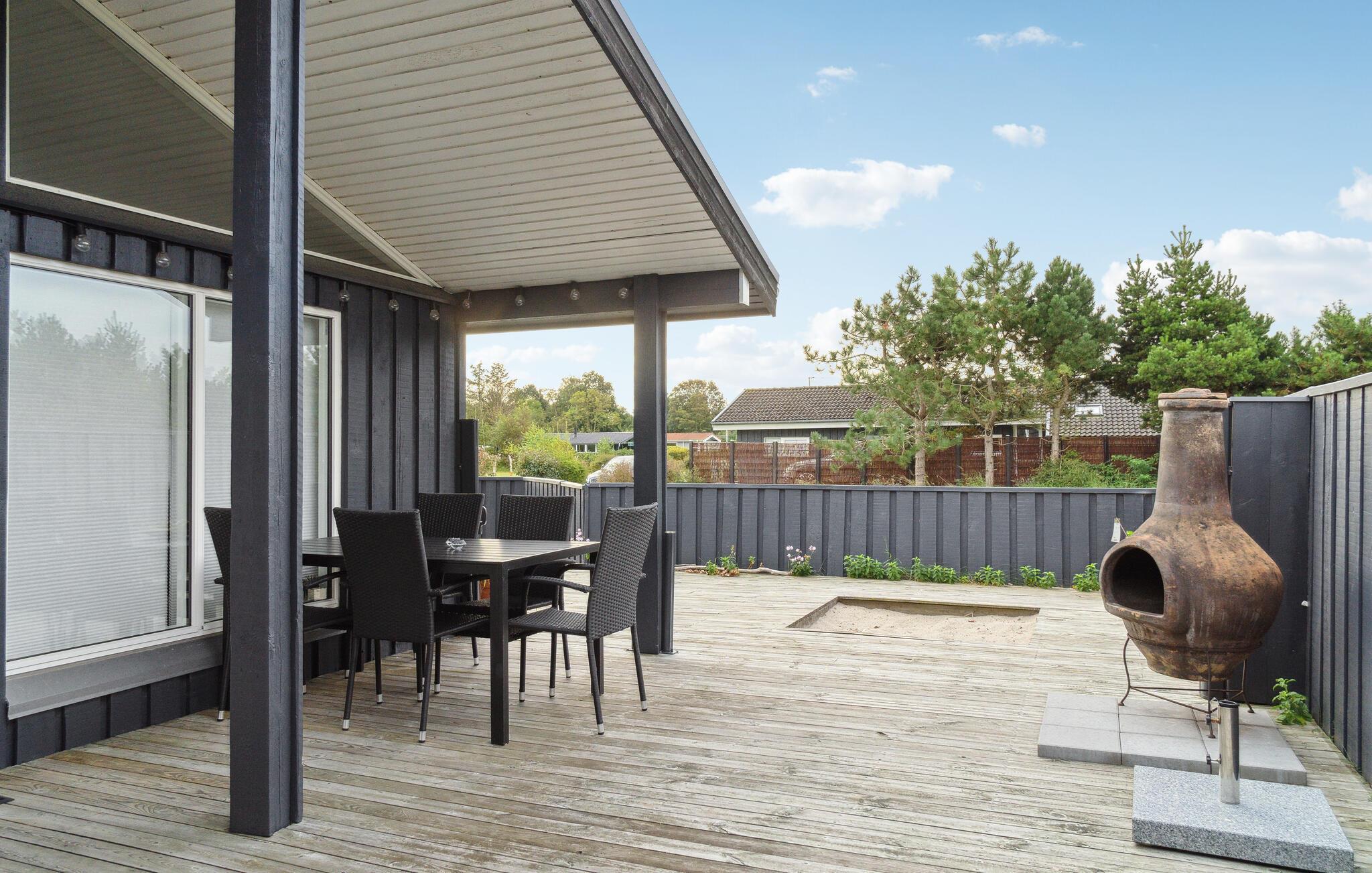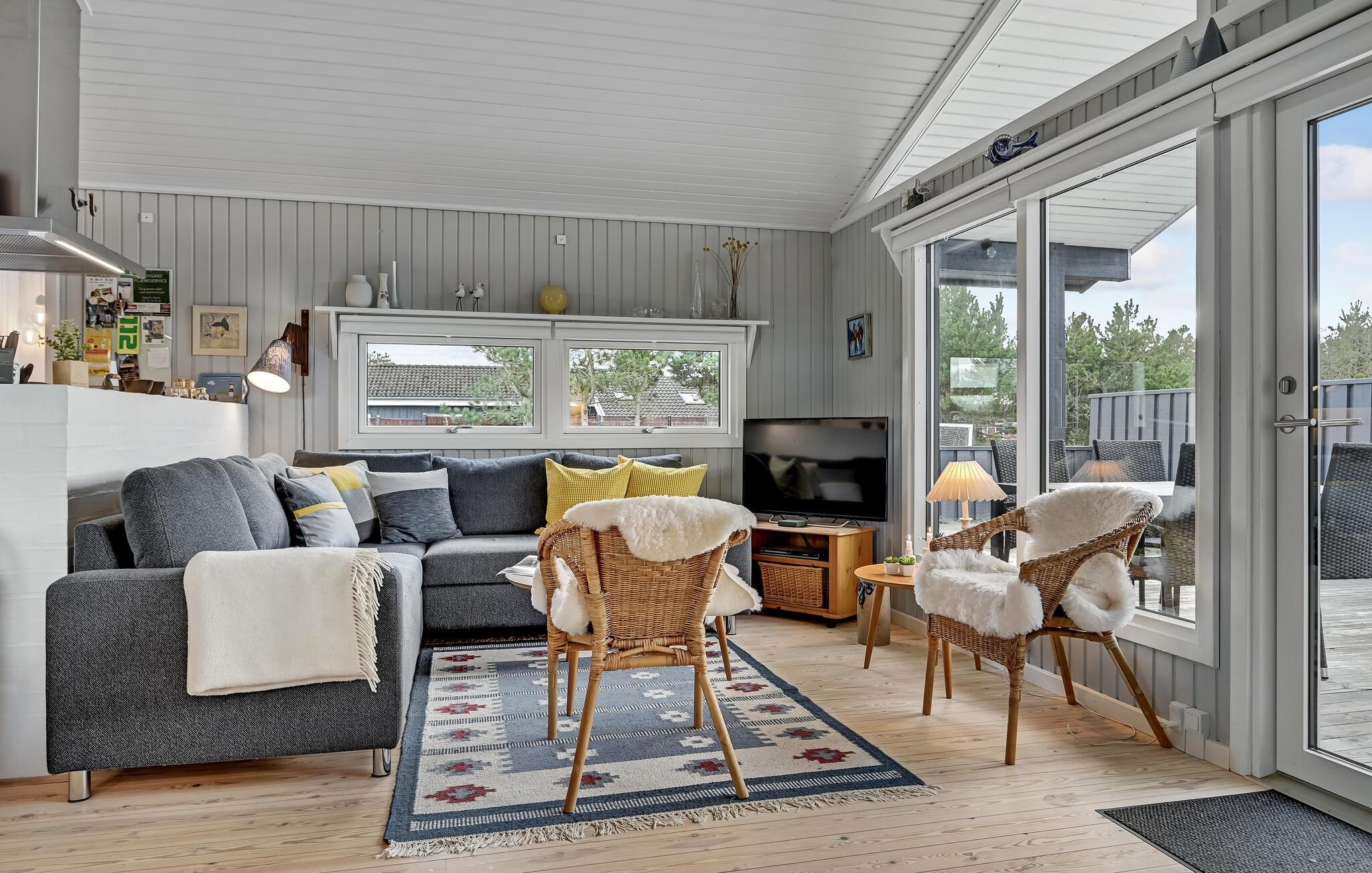 Glæd jer til dette indbydende feriehus ved Fjellerup Strand, hvor I kan nyde sommeren fra en terrasse med havudsigt.