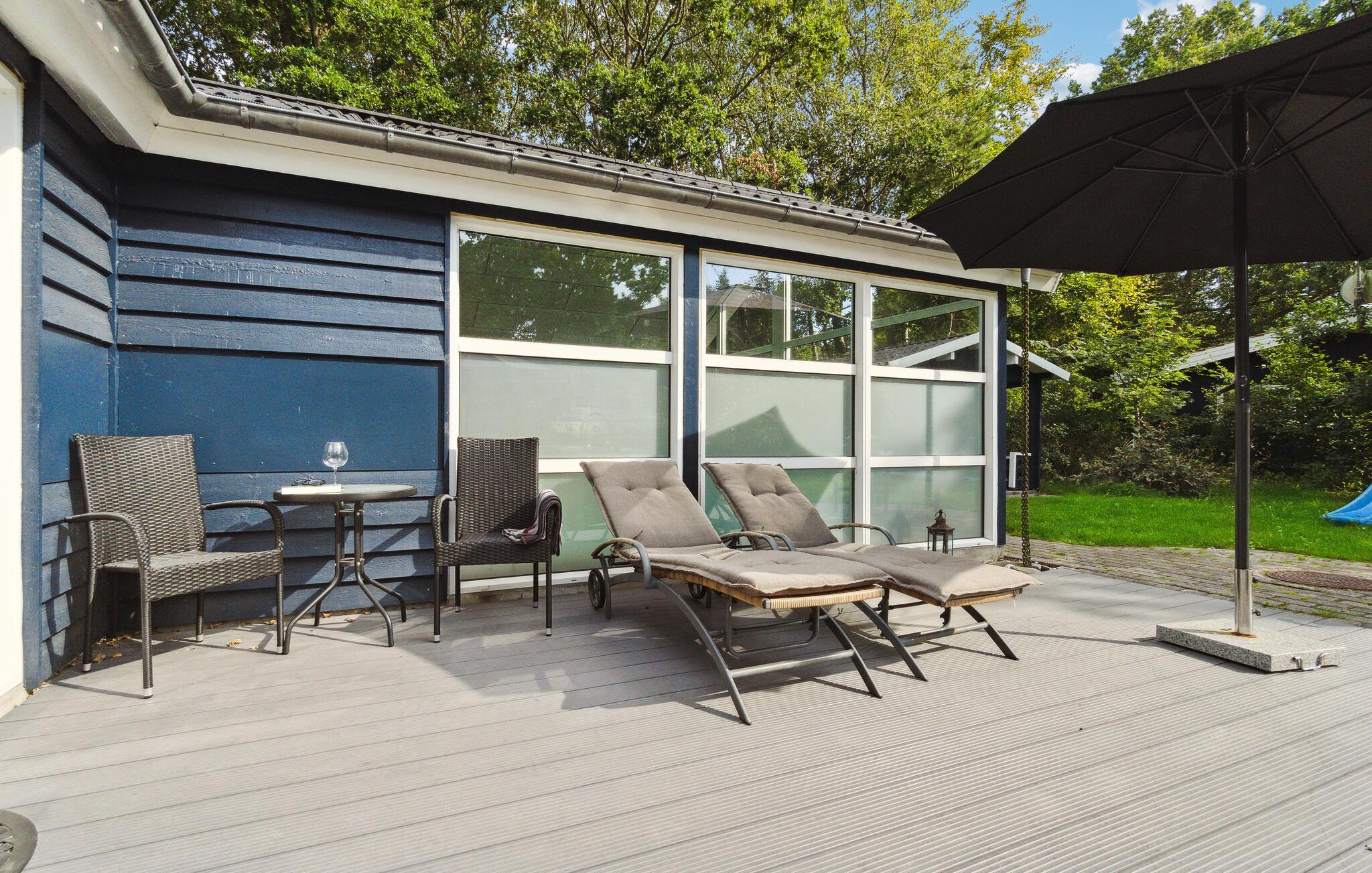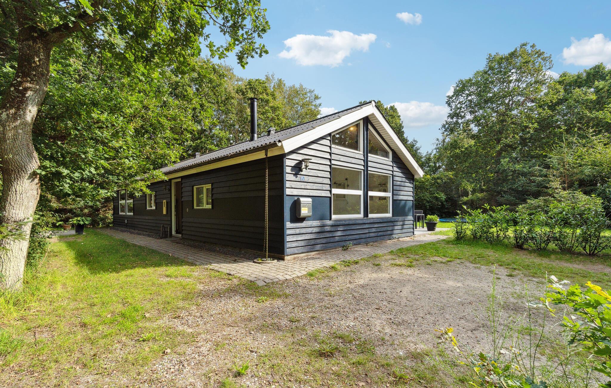 Luksuriøst feriehus nær Fjellerup Strand med indendørs pool, sauna og trampolin i naturskønne omgivelser.