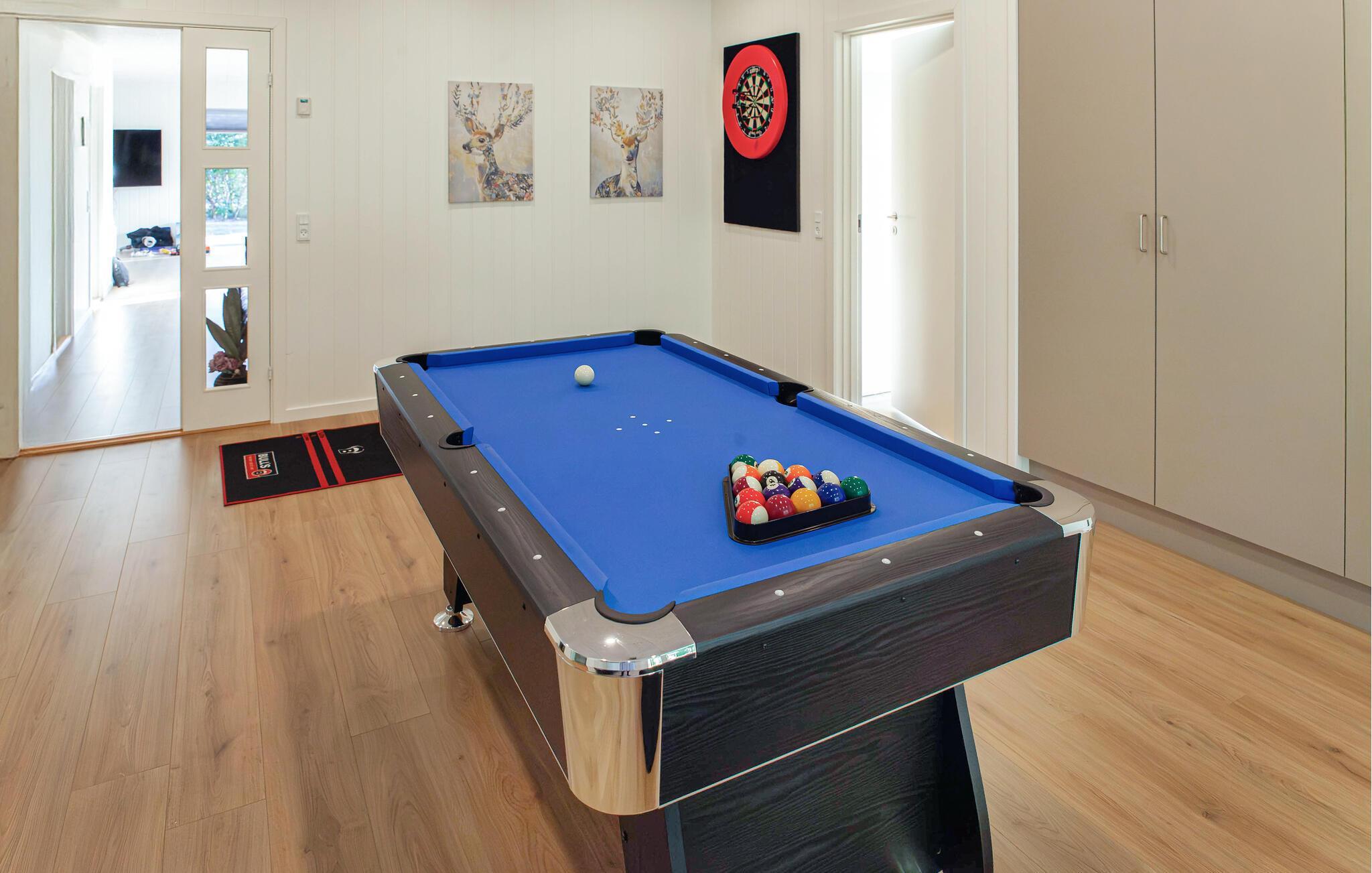 Dette hus kombinerer komfort og ro med masser af muligheder for aktiv fritid. Slap af, mens I lytter til musik, stream en god serie, eller spil en omgang PlayStation. Prøv også kræfter med billard eller dart. Og sidst på dagen kan I samles omkring et måltid og afslutte dagen i godt selskab.